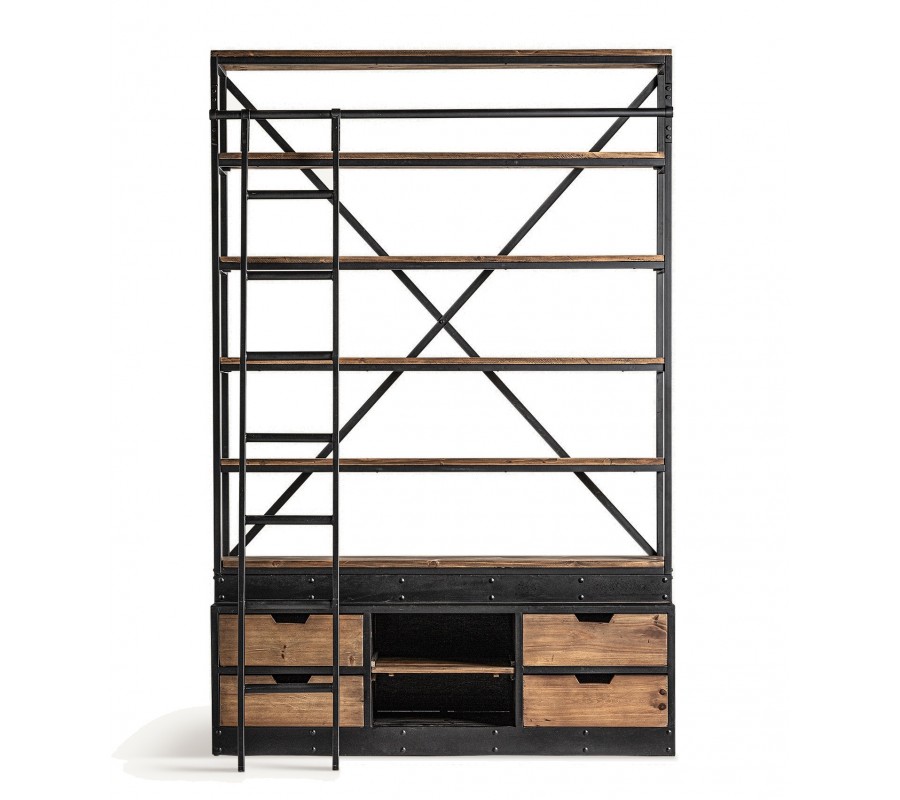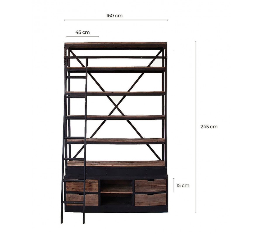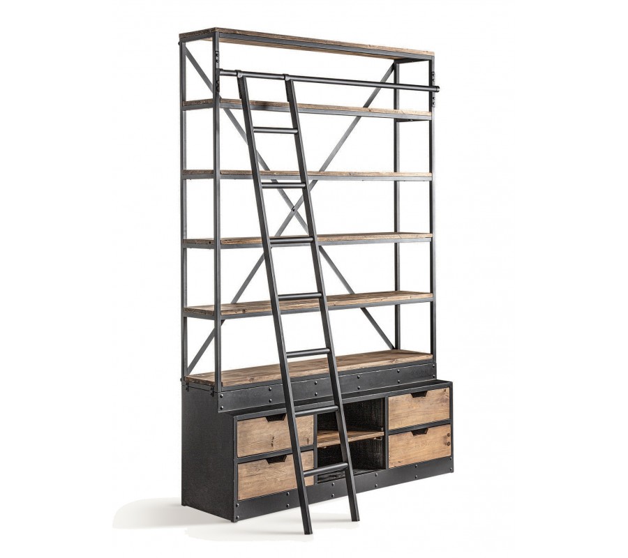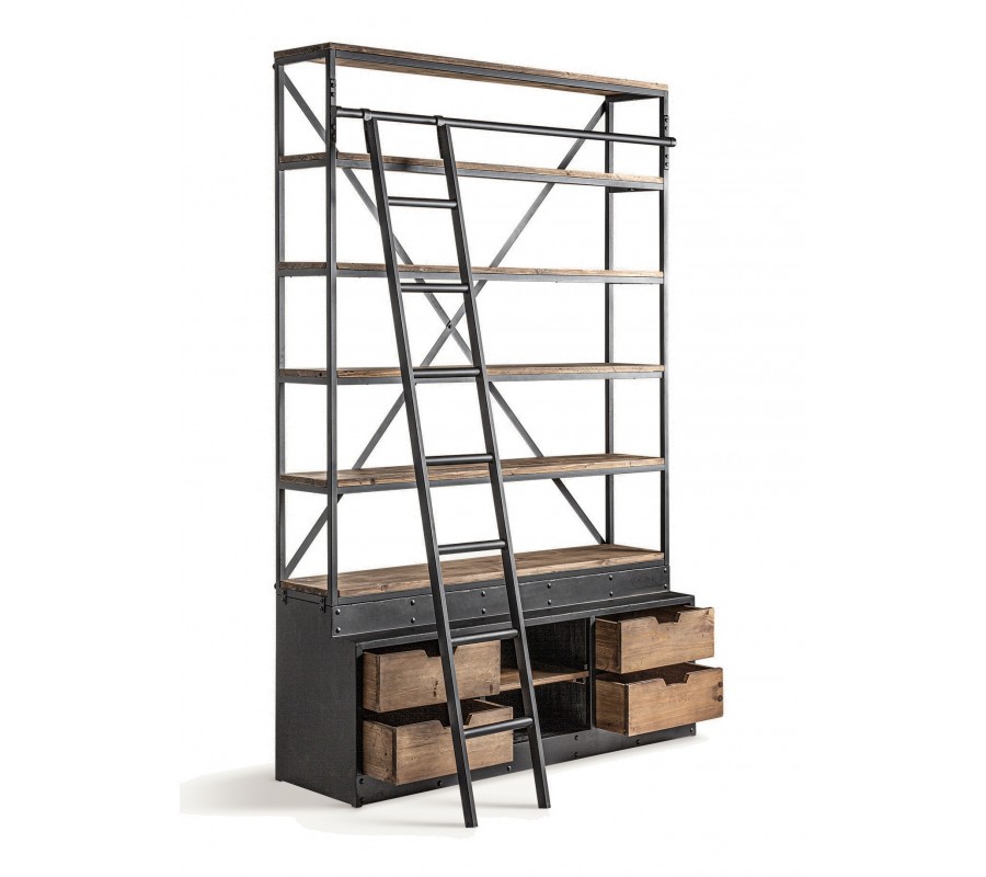 Knižnica Ivalo vás očarí svojím štýlovým industriálnym vizuálom s autentickým vintage charakterom recyklovaného dreva. Oceníte aj veľké množstvo úložného priestoru a praktický rebrík.