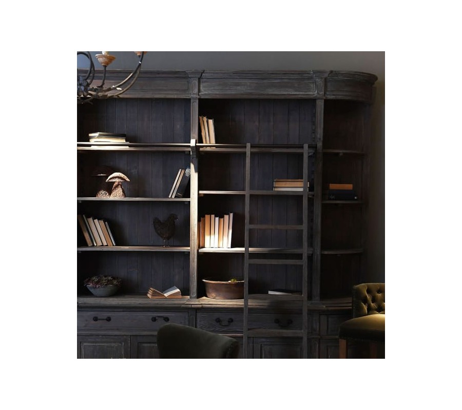 Štýlová masívna vintage knižnica Denver II s rebríkom 352cm