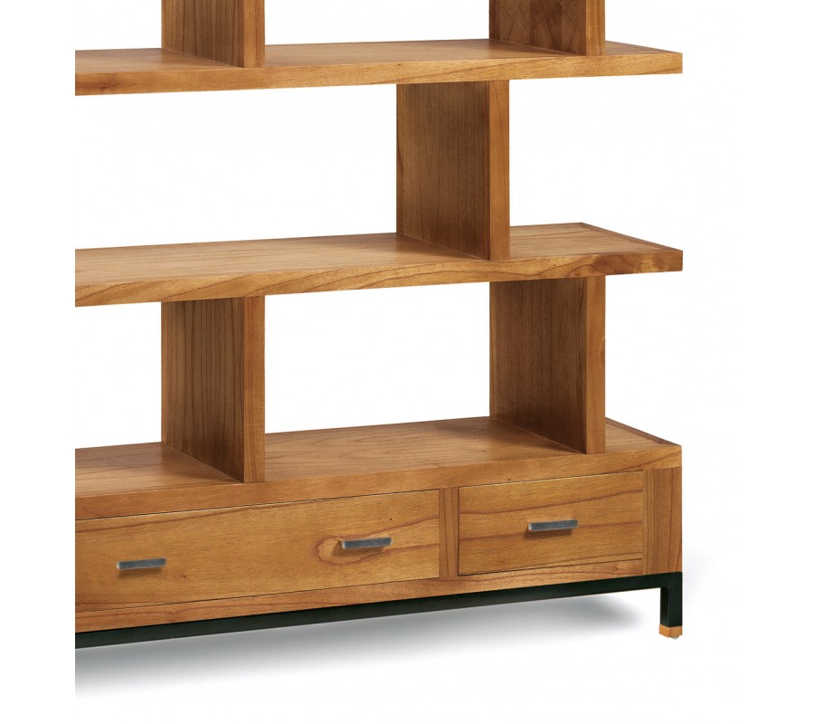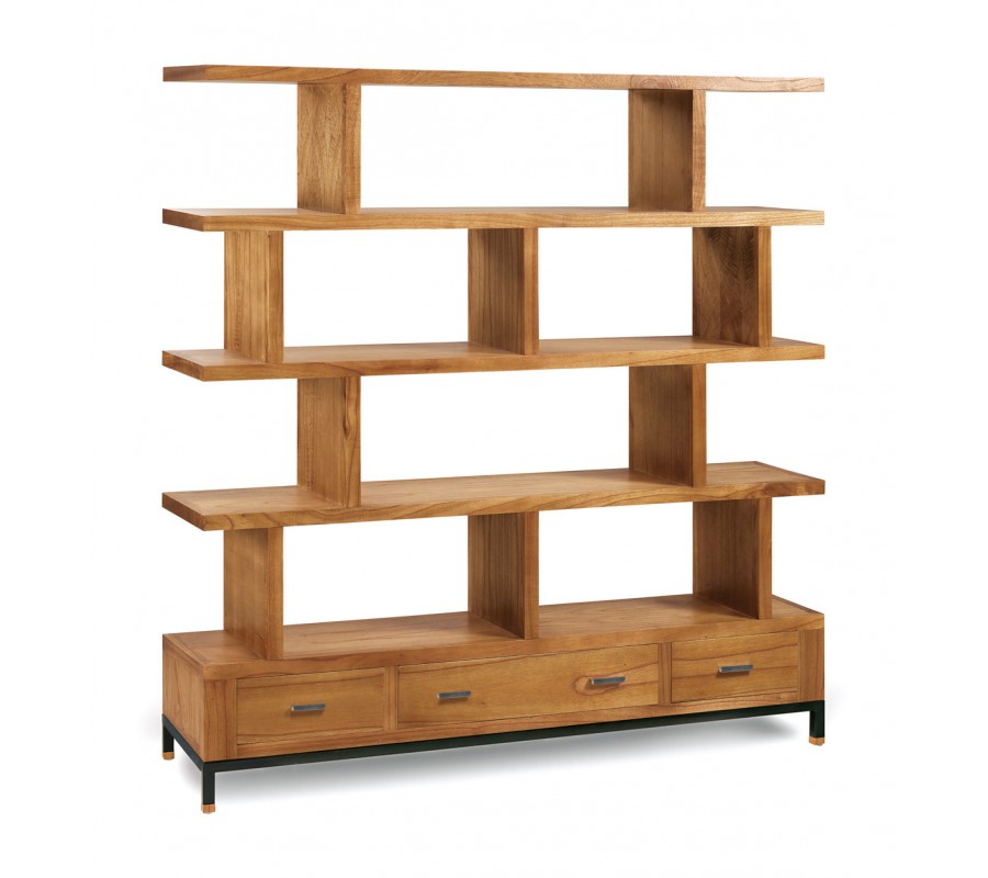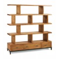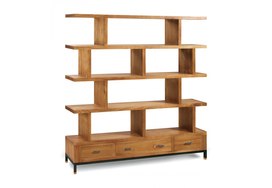 Masívna dizajnová knižnica MADHU z dreva mindi s poličkami a zásuvkami 170cm