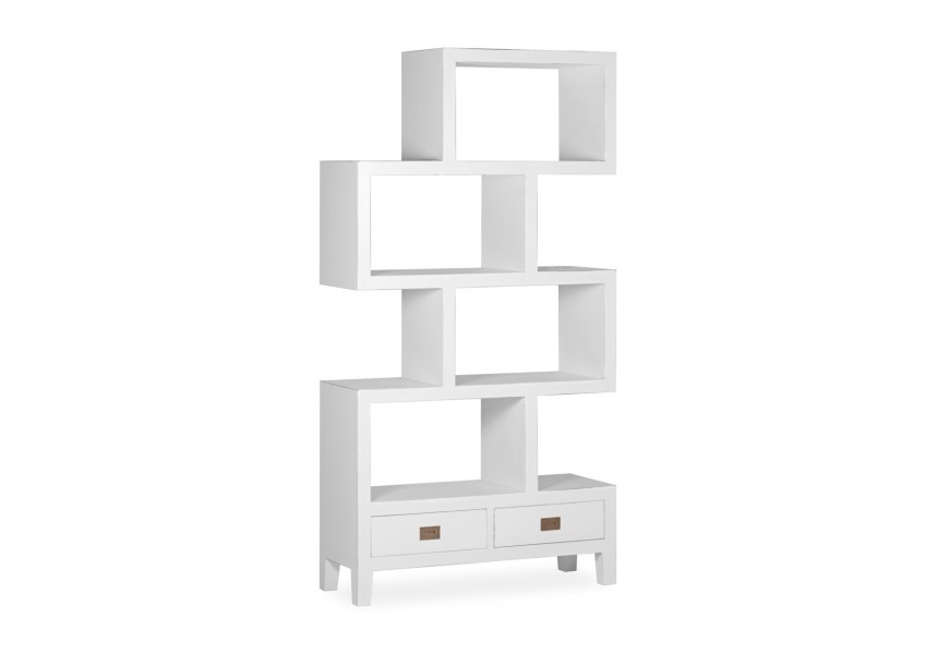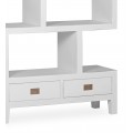 Masívna dizajnová knižnica BLANC z dreva mindi s poličkami a dvomi zásuvkami