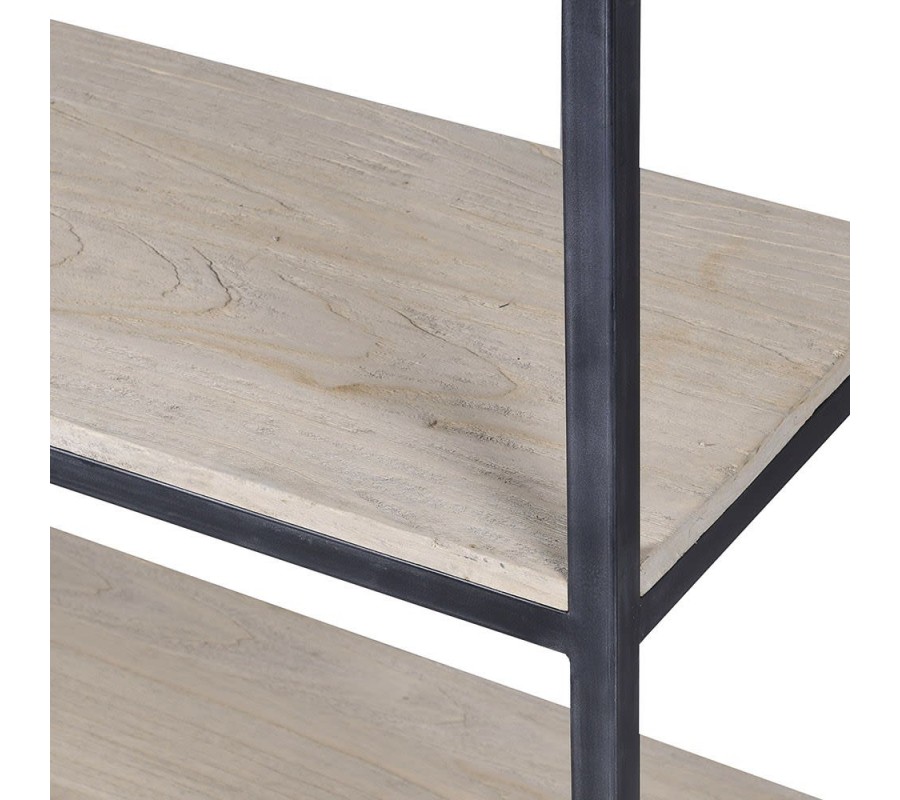 Hranatý minimalistický tvar regálu Runale je tvorený pevnou kovovou konštrukciou zo železa, ktorú dopĺňa jemný bledý odtieň masívneho dreva. Chladne pôsobiaca konštrukcia so sebou prináša znaky surového industriálneho dizajnu, ktorý je rafinovane doplnený drevenými oblasťami v príjemnom teplom hnedom odtieni masívneho dreva v podobe praktických otvorených poličiek. Regál môžete využiť v akejkoľvek miestnosti vášho bytu, vynikne ako knižnica v štýlovej pracovni či úložný priestor v hale, jedálni aj obývacej miestnosti.