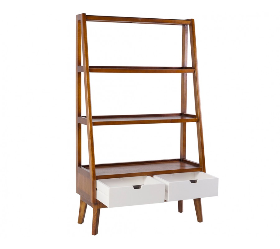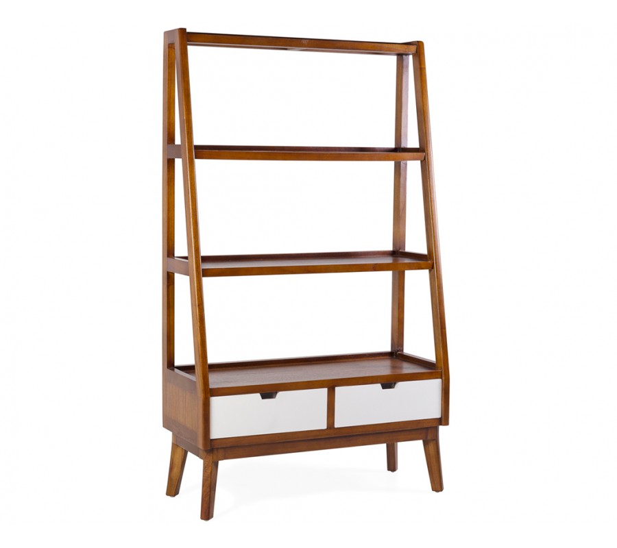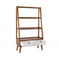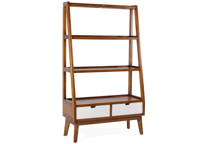 Luxusná masívna drevená knižnica Norse v hnedej farbe s bielymi zásuvkami a rebríkovým dizajnom 180 cm