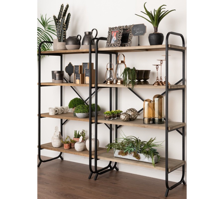 Štýlový industriálny regál CROSS vysoký 160cm sa stane nádherným doplnkom moderných a dizajnových priestorov. Kombinácia masívneho dreva a kovovej konštrukcie dodáva tomuto kúsku nezameniteľný priemyselný nádych typický pre industriálny štýl.