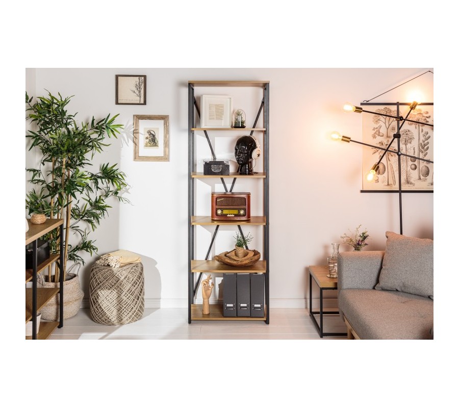 Industriálny dizajnový regál Westford s piatimi policami hnedej farby 180cm