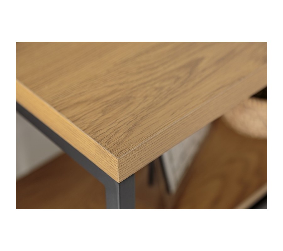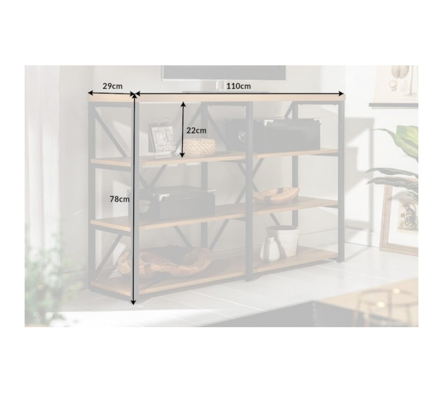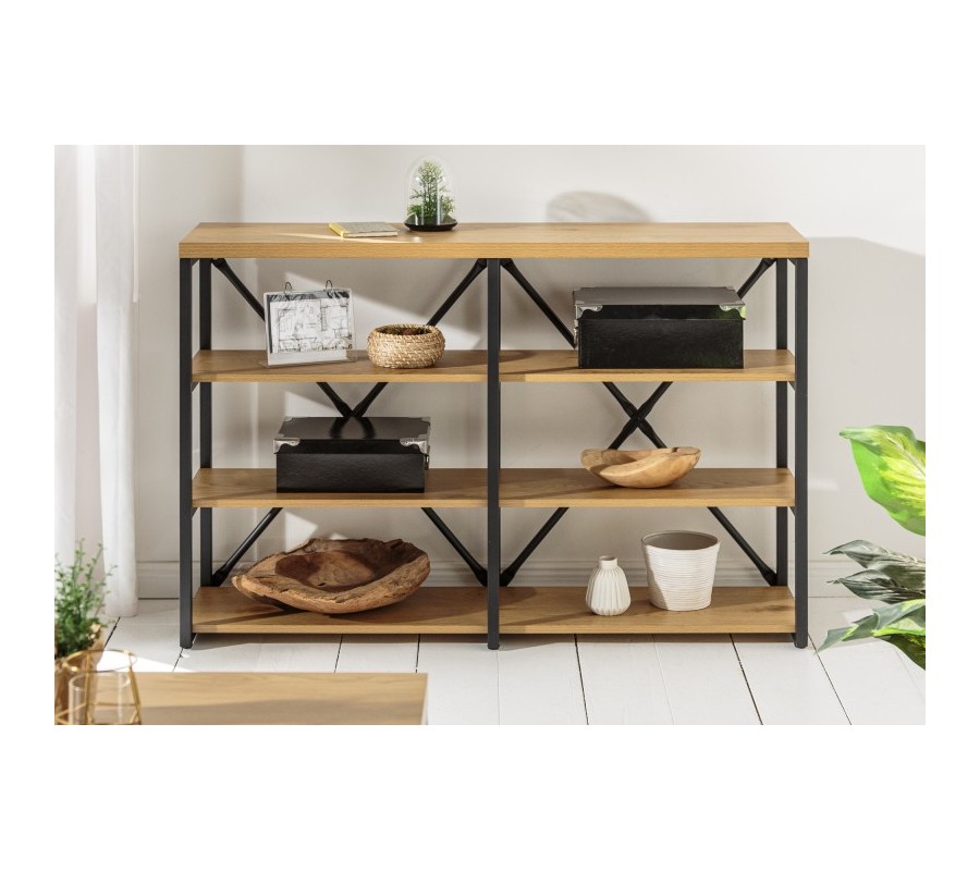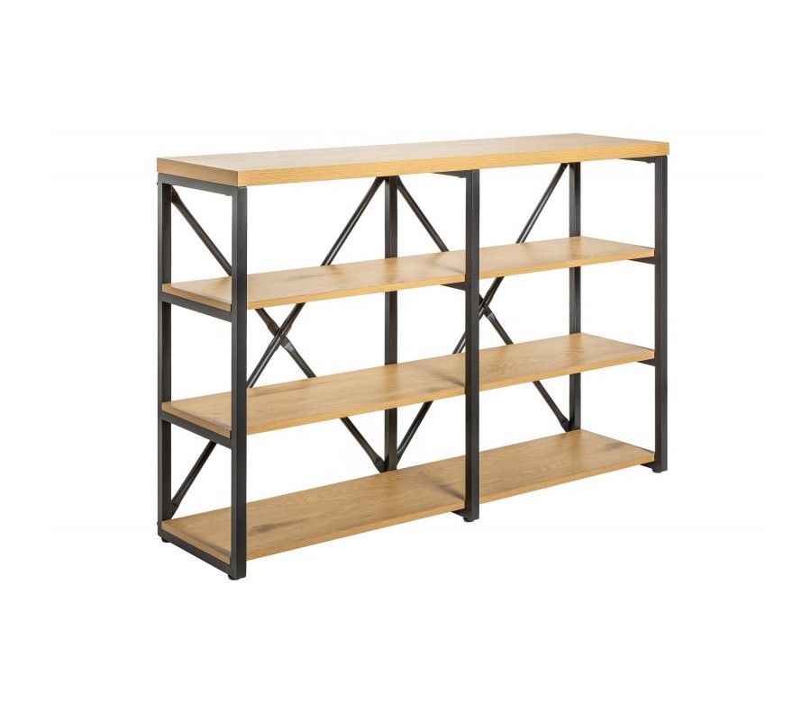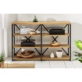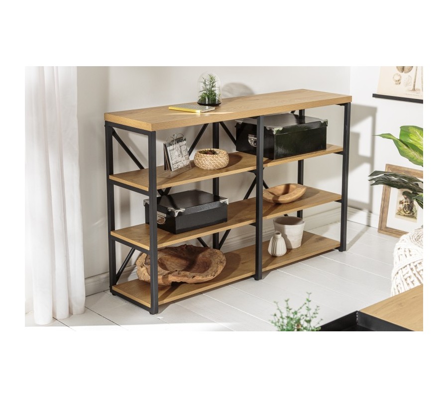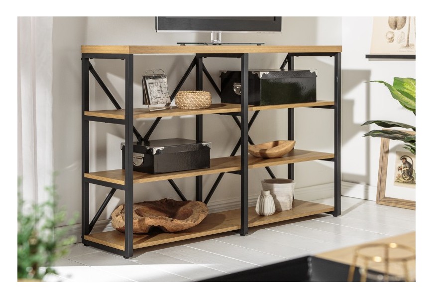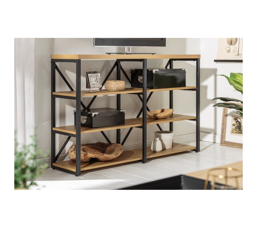 Jedinečný a nadčasový nízky regál z kolekcie industriálneho nábytku Westford dokonale zapadne do vašej kancelárie či obývačky. Tri priestranné police vám poskytne dostatok priestoru na vaše spisy či knižné poklady. Príjemná kombinácia čiernej farby chladnej kovovej konštrukcie a naturálnych dubových odtieňov dreva zapadne do každého interiéru a dodá mu nádych minimalizmu. Nezameniteľnú nízku knižnicu Westford odporúčame kombinovať s dekoráciami v naturálnych odtieňoch ako napríklad tkané koberce.