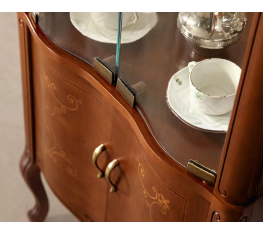 Luxusná masívna knižnica RUSTICA s presklenými dvierkami zaujme svojim elegantným, starožitným vzhľadom, ktorým dokonale zapadne do rustikálnych či barokovo zariadených priestorov. Jedinečným doplnkom sú ozdobné prvky, ktoré sú vo farebnej variante Orech a Čerešňa ručne vyrábané tradičnou technikou marketerie. Okrem príjemného vzhľadu táto knižnica využiteľná aj ako vitrína ponúka taktiež úložný priestor v podobe spodnej skrinky a výškovo nastaviteľných políc. Knižnicu RUSTICA je možné vyhotoviť v dvoch šírkových rozmeroch a rovnako ako všetok nábytok tejto kolekcie v štyroch farebných prevedeniach.