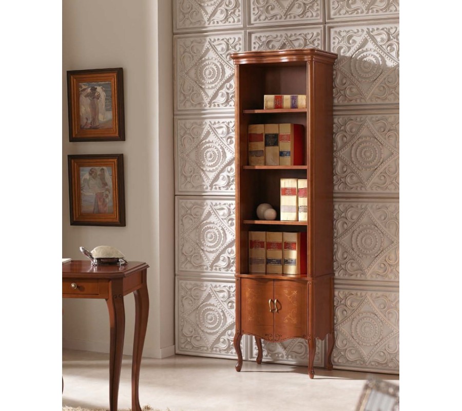 Luxusná masívna knižnica Rustica sa svojim elegantným vzhľadom stane ozdobou každej rustikálne zariadenej domácnosti. Knižnica je vyrobená z kvalitného bukového masívu a doplnená o ručne vyrezávané ozdobné prvky, ktoré sú vo farebnej variante Čerešňa a Orech vyrábané tradičnou technikou marketerie. Rovnako ako všetok nábytok kolekcie Rustica, je možné aj túto knižnicu vyhotoviť v štyroch farebných prevedeniach podľa vzorkovníka dreva.