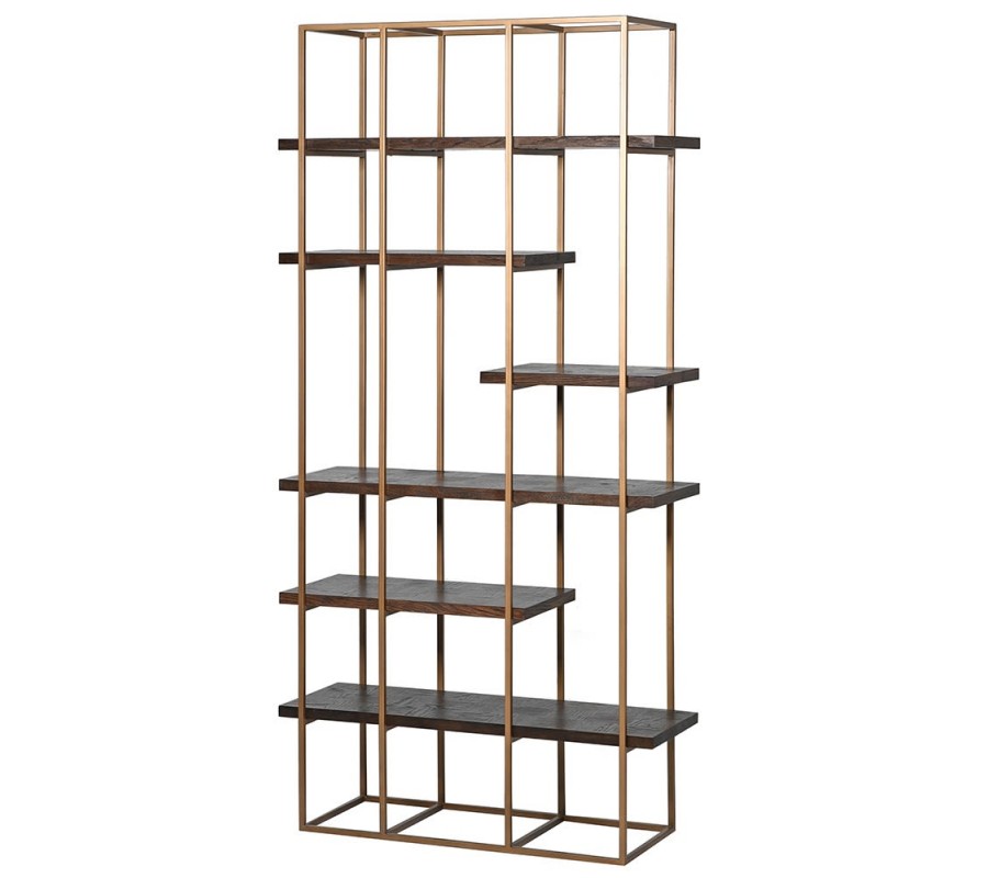 Art-deco luxusný regál Parketia z dreva a kovu zlatej farby 205cm