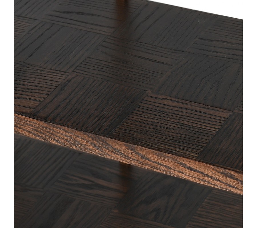 Exkluzívny regál Parketia je kúskom vhodným do moderne či art-deco ladených obývačiek, spální a pracovní. Kvalitné masívne dubové drevo sa snúbi s luxusným zlatým kovom, čo tvorí jedinečný moderný art-deco nádych. Zaujímavá je tiež povrchová úprava s parketovým vzorom, ktorá necháva vyniknúť prirodzenú kresbu dreva a strieda tmavší odtieň hnedej so svetlejším. Regál Parketia disponuje šiestimi poličkami rôznych veľkostí, ktoré výborne poslúžia na vystavenie dekorácií, izbových rastlín, kníh či uskladnenie dokumentov a iných predmetov. Regál odporúčame kombinovať s naturálnymi farbami, dizajnovými zrkadlami či koberčekmi s dlhým vlasom.
