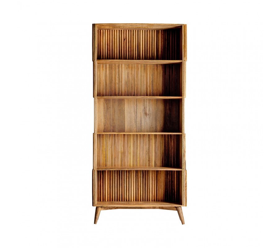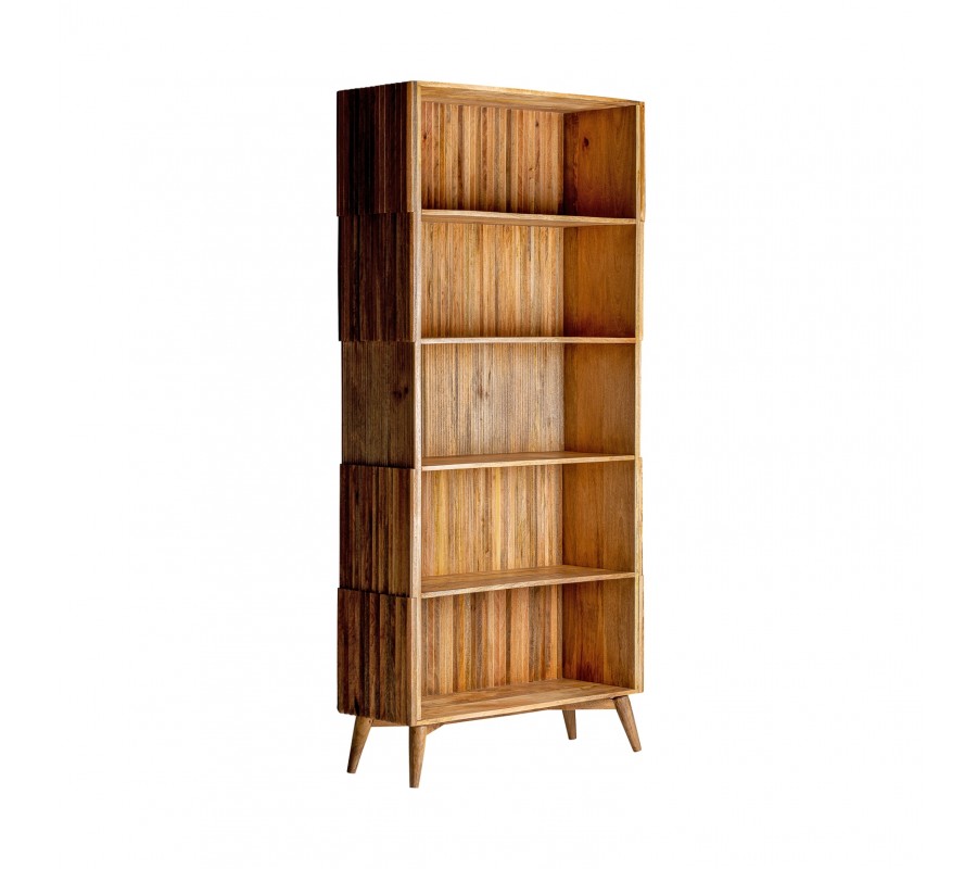 Luxusná masívna knižnica Plissé Nature na nožičkách v prírodnej hnedej farbe s poličkami 230cm