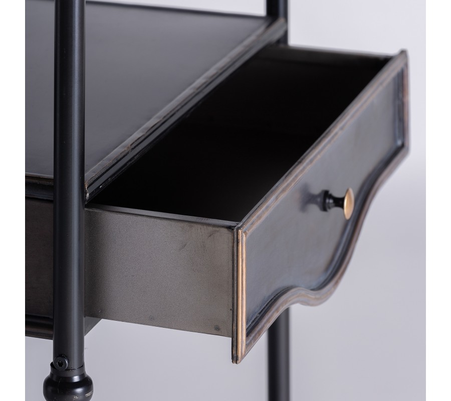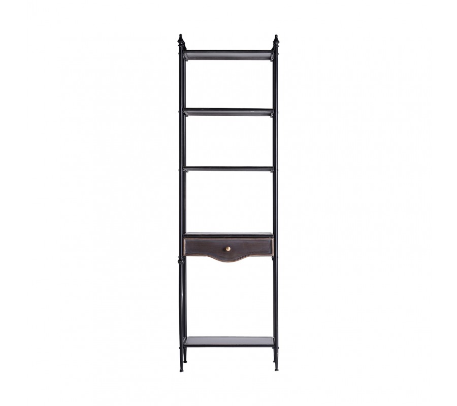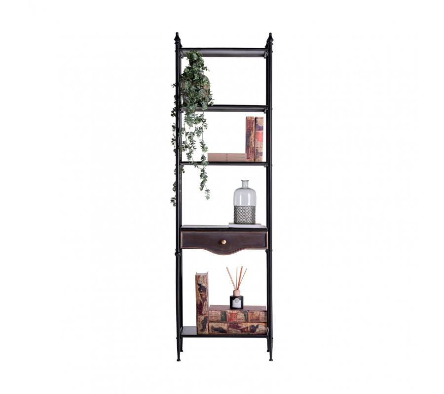 Exkluzívna knižnica Islip zaujme svojou impozantnou kovovou konštrukciou. Disponuje štyrmi poličkami a jednou praktickou zásuvkou, vďaka čomu je ideálnym spoločníkom do kancelárií, obývačiek či študentských izieb.Nesie sa v tmavohnedom a čiernom odtieni, je teda univerzálnym kúskom, ktorý možno kombinovať aj s pestrejším nábytkom či doplnkami. Svojím industriálnym nádychom a vzdušným efektom osvieži každý moderný interiér. Knižnicu Islip odporúčame kombinovať aj s ďalšími kúskami z tejto modernej kolekcie, rovnako ako s doplnkami z kovu a prírodných materiálov.