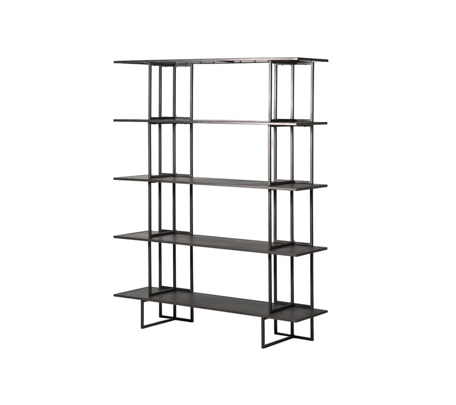 Industriálny vysoký kovový čierny regál Gropius s piatimi policami na kovových nohách 190cm