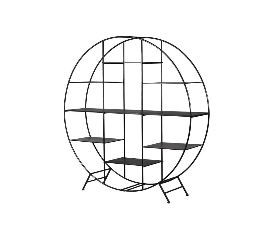 Žiada si vasa pracovňa, obývačka či spálňa osviežiť novým dominantným kúskom v industriálnom štýle? Regál Pasadena je vynikajúcim dizajnovým a praktickým doplnkom práve do takto ladených interiérov! Zaujme svojím nevšedným kruhovým tvarom, ktorý tvorí kovová konštrukcia v nadčasovej čiernej farbe. Sedem poličiek rôznych veľkostí ponúka úložný priestor na vystavenie dekorácií, kníh, rastlín či iných predmetov. Vďaka svojmu minimalistickému dizajnu má regál Pasadena všestranné využitie a ľahko sa kombinuje s ďalším nábytkom. Vzdušný efekt dopom.že k optickému zväčšeniu vašej miestnosti a zároveň pôsobí dizajnovým nadčasovým dojmom. Pre dosiahnutie dokonalého industriálneho vzhľadu odporúčame regál Pasadena kombinovať s masívnym alebo kovovým nábytkom, koženou sedačkou či výraznejšími doplnkami z kovu a kameňa.