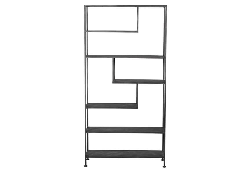 Industriálny dizajnový regál Seminole s geometrickou konštrukciou z kovu čiernej farby 160cm