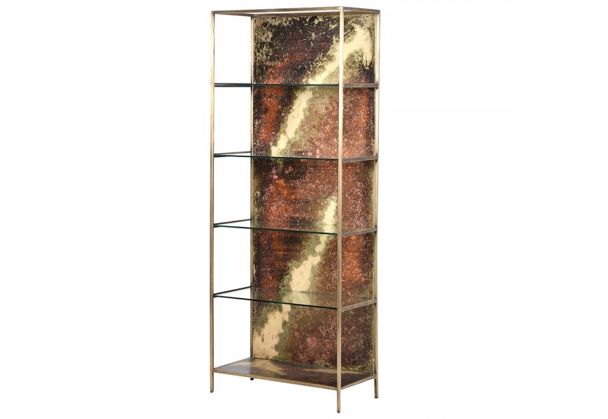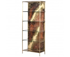 Luxusný art deco regál Oxidia s kovovou zlatou konštrukciou a s piatimi sklenenými poličkami 194cm