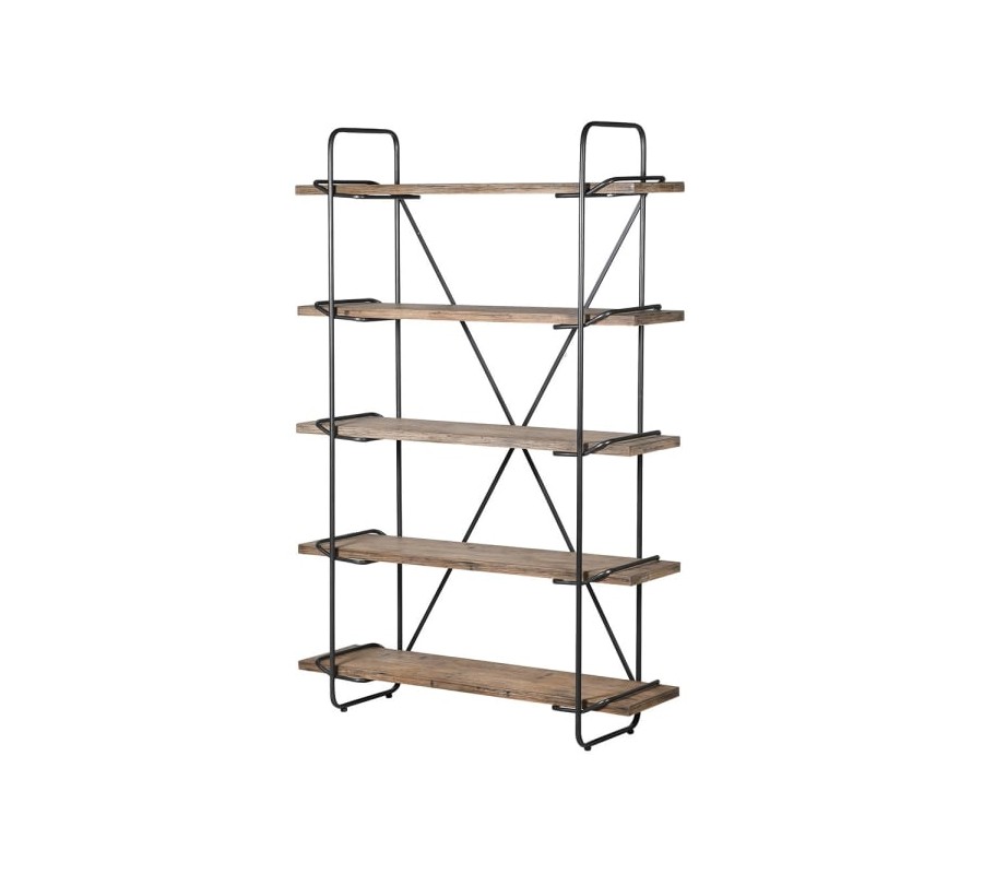 Industriálny regál Cincinati z masívneho dreva v prírodnej hnedej farbe s čiernou kovovou konštrukciou 181cm