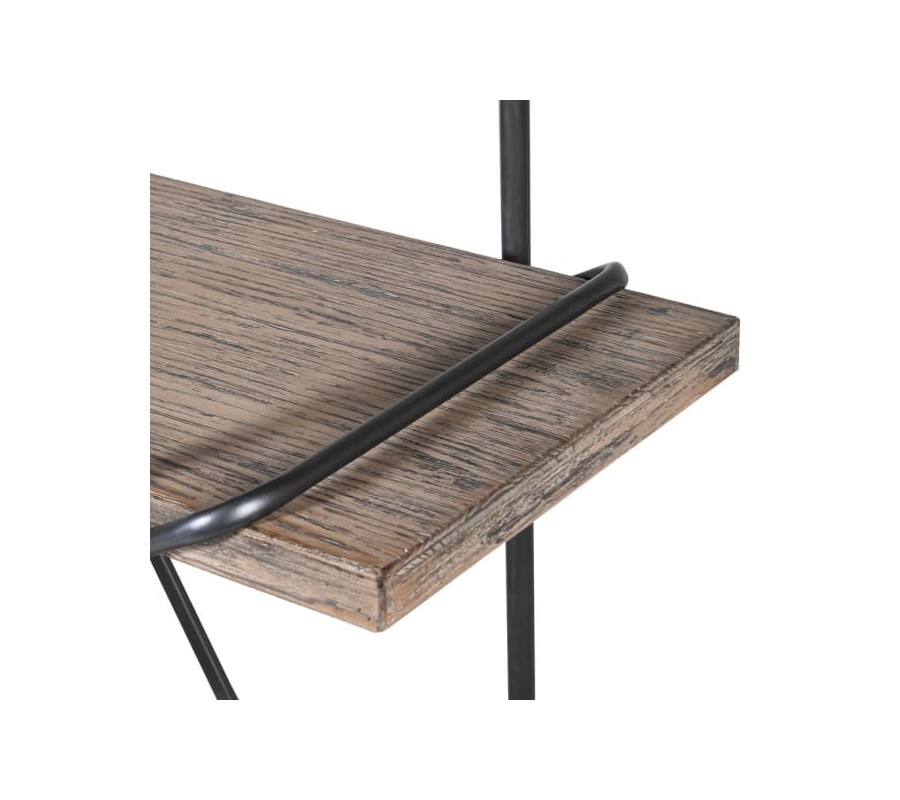 Industriálny vzhľad dizajnového regálu Cincinati poteší všetkých milovníkov tohto štýlu, ktorý hľadajú do svojho interiéru praktický a zároveň štýlzvý kúsok. Regál kombinuje materiál masívneho dreva a kovu, vďaka čomu nadobúda nadčasový vzhľad typický práve pre tento štýl. Päť praktických poličiek vám poskytne úložný priesot vhodný na umiestnenie kníh, dekorácií, izbových rastlín či iných predmetov. Poličky z masívneho dreva pôsobia svietim naturálnym dojmom, a to najmä vďaka hnedej povrchovej úprave nechávajúcej vyniknúť prírodnú kresbu dreva. Poličky sú osadené do jednoduchej kovovej konštrukcie čiernej farby so zaoblenými hranami, čo zjemňuje jej celkový vzhľad. Materiálovou a farebnou kombináciou je umocnený industriálny nádych, ktorý môže doladiť aj vase priestory obývačky, pracovne či spálne.