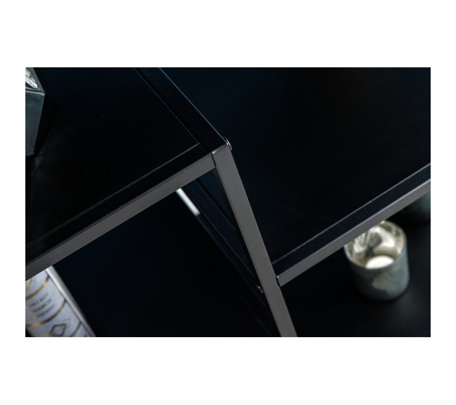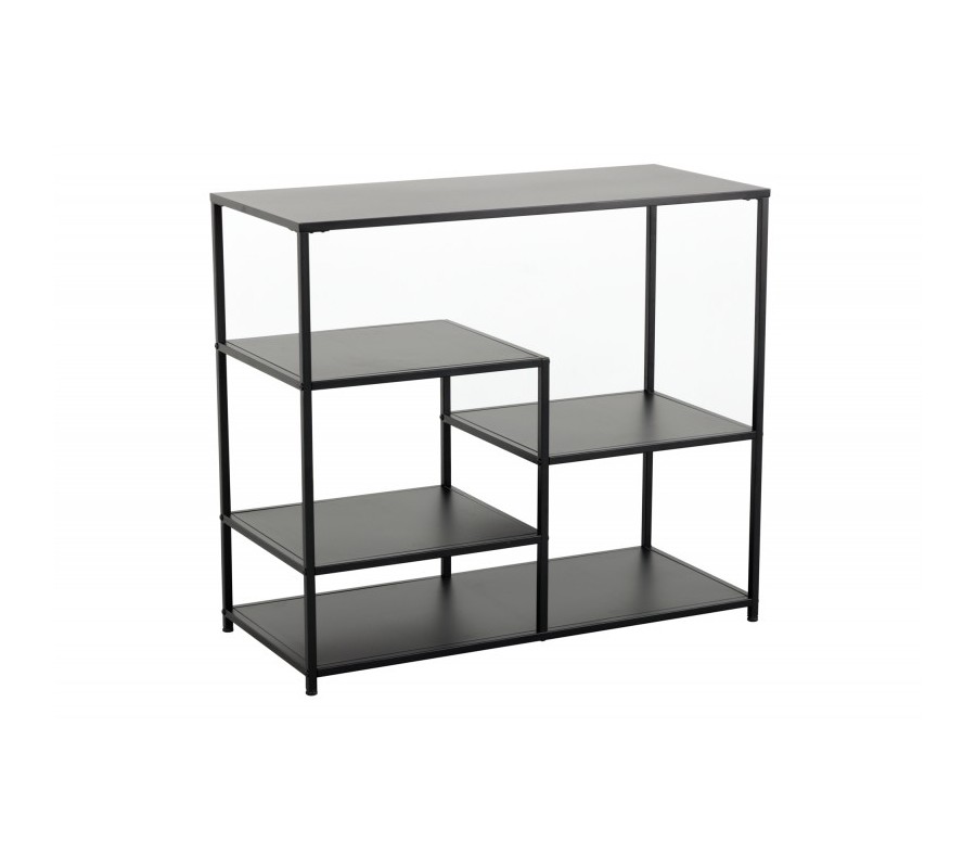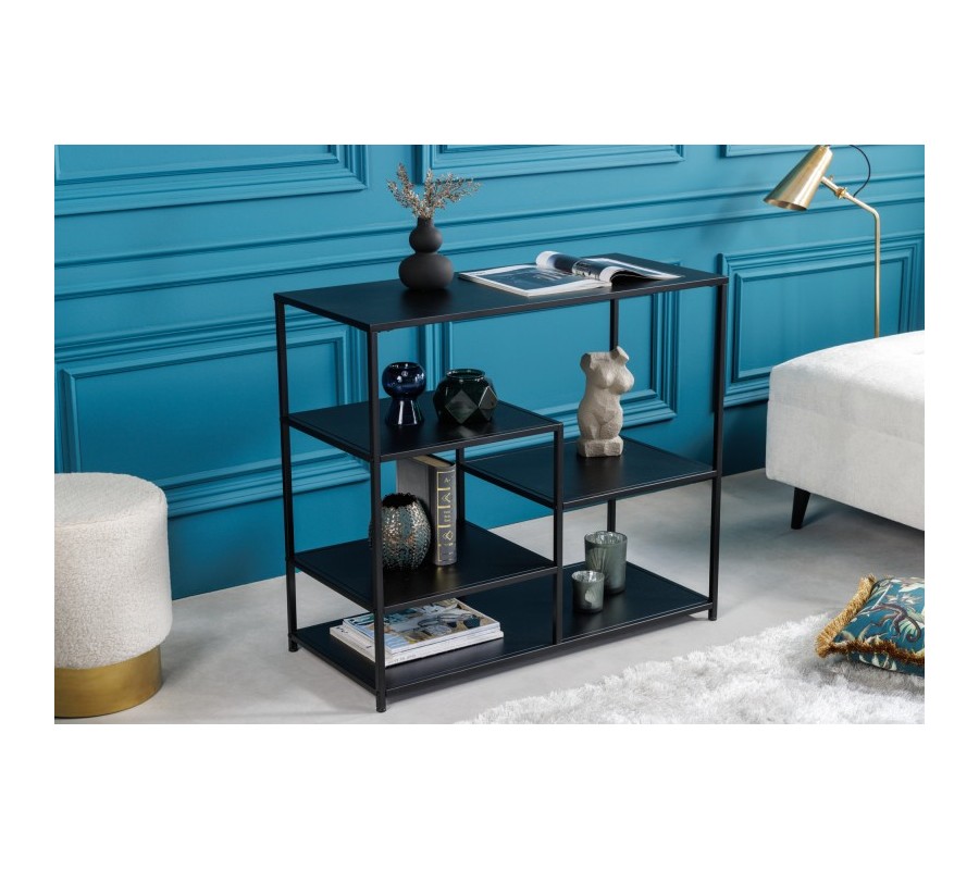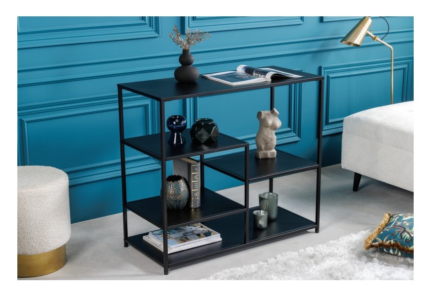 Dizajnový kovový regál z kolekcie Industria Durante Vás zaujme svojim elegantným industriálnym prevedením s priamymi líniami a ostrými hranami. Industriálny regál Industria Durante je vyrábaný z kovu v čiernej farbe, ktorý je obohatený o povrchovú úpravu s práškovým nástrekom, čo umocní industriálny vzhľad regálu. Praktická stránka moderného regálu Industria Durante disponuje troma striedavo uloženými poličkami so šírkou 44 centimetrov a otvorenými priestormi s výškami 16, 24, 30 a 42 centimetrov, čo Vám umožní vystaviť aj rozmernejšie dekorácie a živú zeleň. Moderný kovový regál Industria Durante v čiernom kovovom prevedení odporúčame kombinovať v industriálnych interiéroch v kombinácií s kovovým a masívnym naturánym nábytkom, s kovovými lampami a s tmavo čalúnenými sedačkami a kreslami.