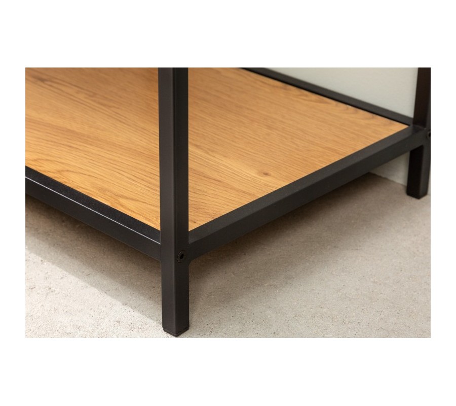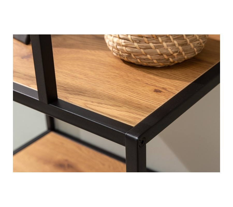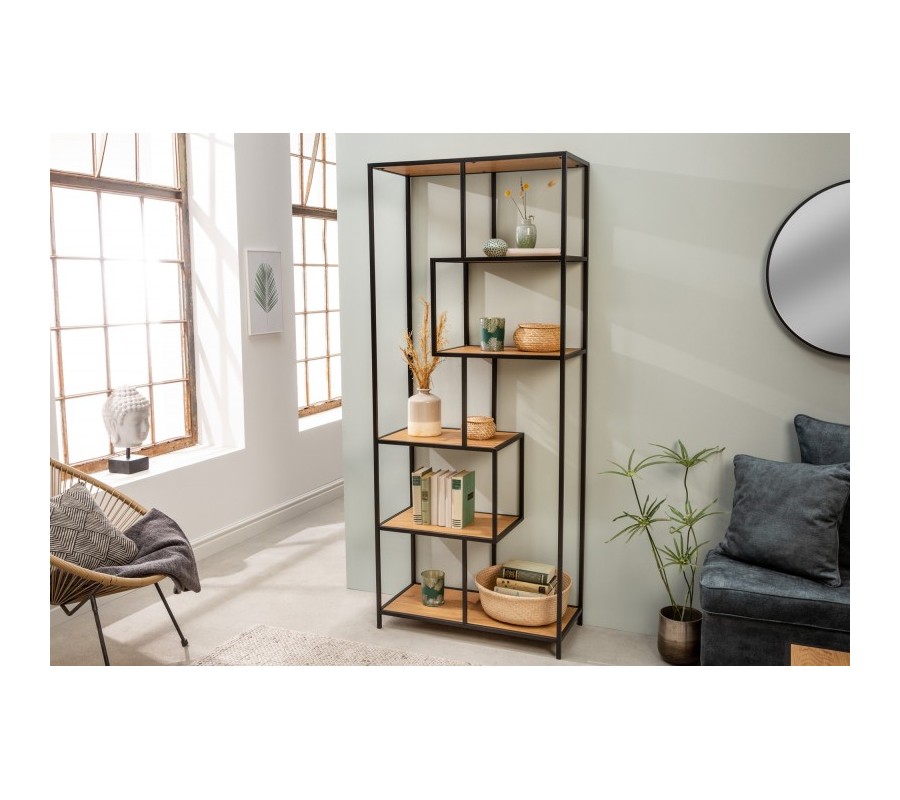 Jedinečný regál z kolekcie industriálneho nábytku Industria Natura Vás zaujme svojím sofistkovaným dizajnom v industriálnom štýle, ktorý Vám taktiež prinesie bohatý úložný priestor na vystavenie aj vyšších dekorácií. Industriálny regál Industria Natura sa pýši kovovou konštrukciou v čiernej farbe s práškovým nástrekom, čo vytvorí chladný industriálny vzhľad. Konštrukcia z kovu drží päť striedavo usporiadaných poličiek, ktoré disponujú vyhotovením z dreva, obohatenom o kvalitné dubové dyhovanie, čo vyzdvihne naturálny vzhľad s kresbou dreva. Maximálna nosnosť jednej poličky je 10kg. Kovový regál Industria Natura odporúčame kombinovať s moderným nábytkom Industria Natura, Negra či Durante, s tmavo čalúnenými sedačkami, či kreslami s kovovými doplnkami a lampami, a taktiež aj so živou zeleňou.