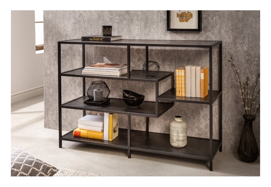 Čierna industriálna konzola Industria Negra s kovovou konštrukciou a 5timi dyhovanými policami 115cm