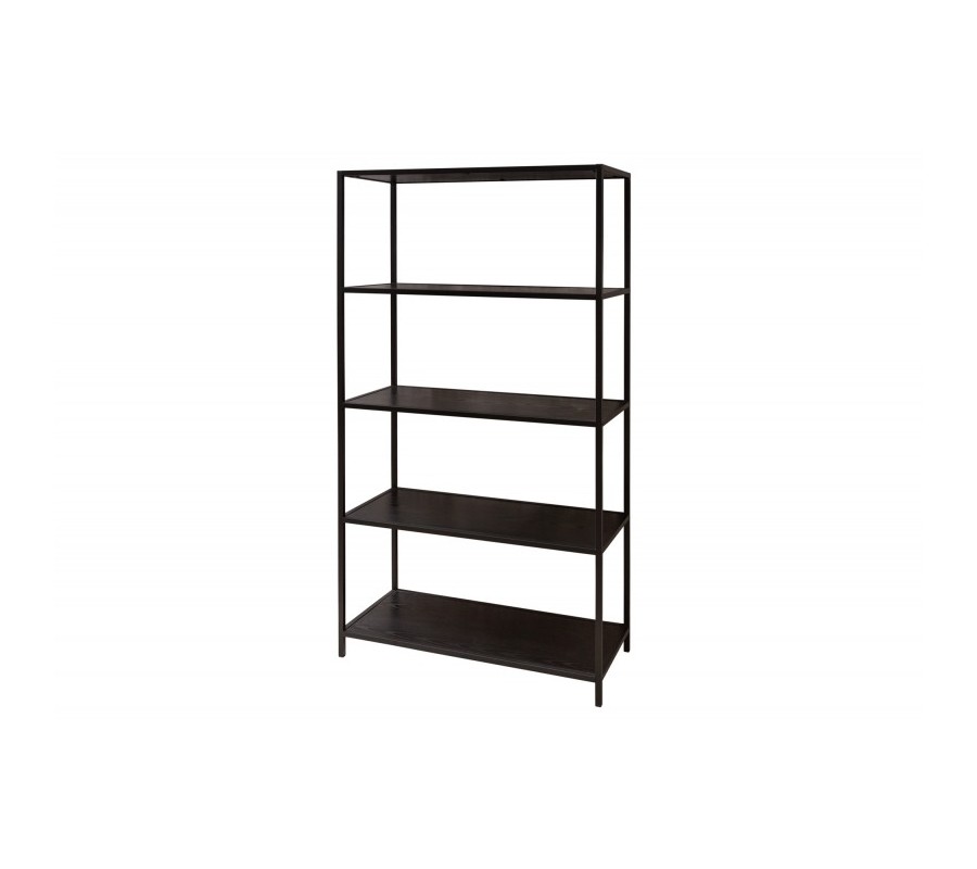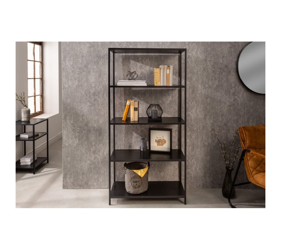 Industriálny čierny regál Industria Negra so 4mi policami s jaseňovou dyhou 77cm