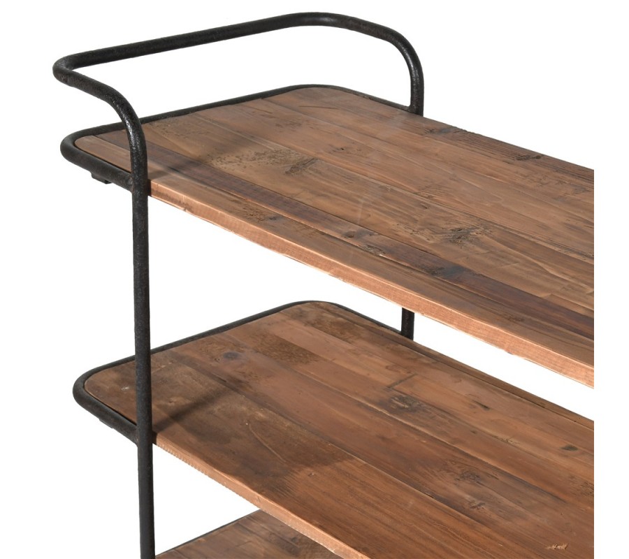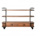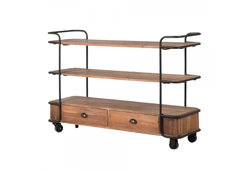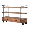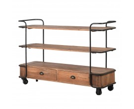 Industriálny regál na kolieskach Impact s čiernou kovovou konštrukciou z masívneho dreva v prevedení hnedý dub 146cm