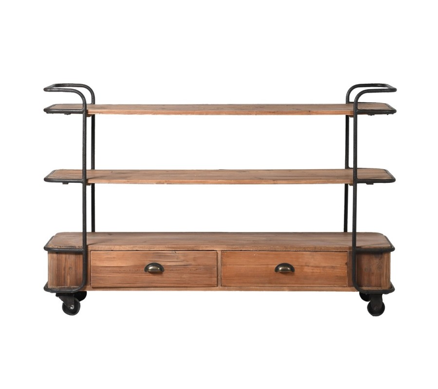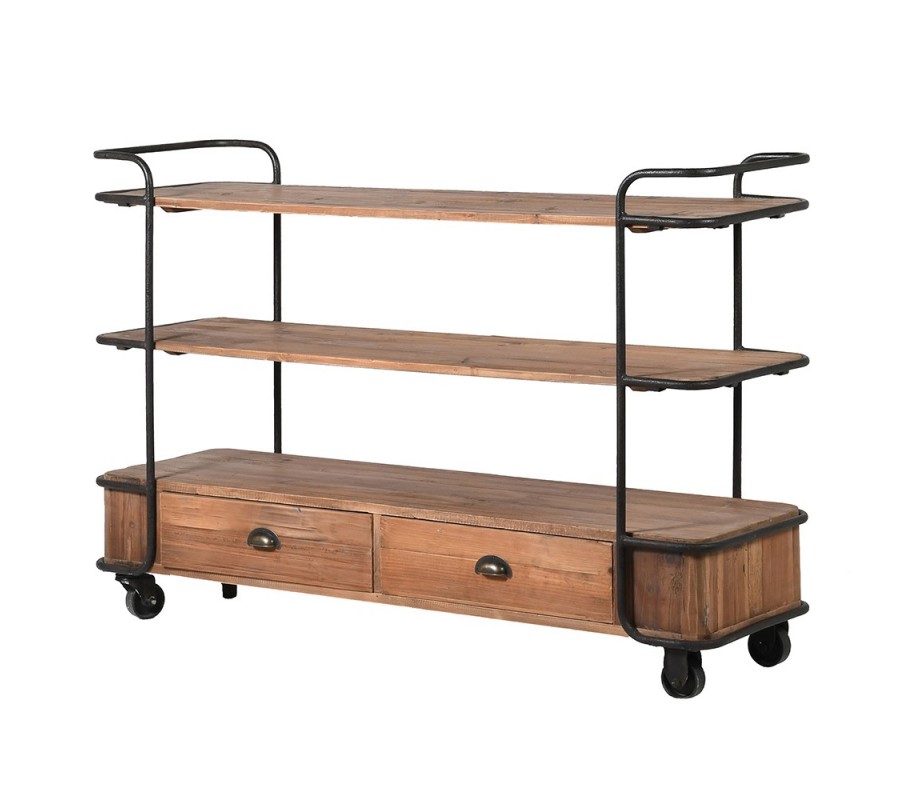 Milovníci industriálneho štýlu si zaručene zamilujú štýlový hnedý regál Impact, ktorý sa pýši dizajnovým vyhotovením s jemným nádychom vintage štýlu. Industriálny regál Impact je vyrábaný z recyklovaného dubového masívu v prírodnom hnedom odtieni, ktorý je obohatený o povrchovú úpravu, vyzdvihujúcu naturálny vzhľad a povrch dreva. Industriálny regál Impact Vám ponúka bohatú praktickú stránku v podobe dvoch 140 centrimetrov širokých dosiek, ktoré sú držané tvarovanou čiernou konštrukciou z kovu, vďaka ktorej naberá tento jedinečný kúsok svoj industriálny vzhľad. Industriálny regál Impact v neposlednom rade disponuje dvoma praktickými zásuvkami s vintage zlatými kovovými rukoväťami. Avšak najväčšiou čerešničkou na torte sú praktické kolieska, vďaka ktorým je manipulácia s regálom Impact naozaj jednoduchá. Industriálny regál Impact odporúčame kombinovať v industriálne zariadených obývačkách s kovovými doplnkami, s vintage dekoráciami, s masívnym nábytkom a so sivými sedačkami, ktoré podčiarknu industriálny vzhľad vášho interiéru.