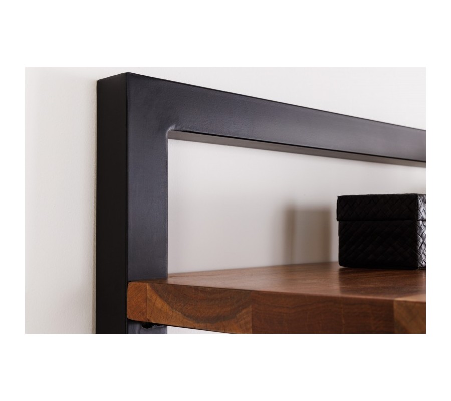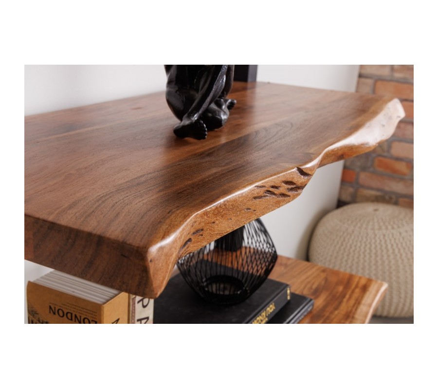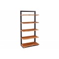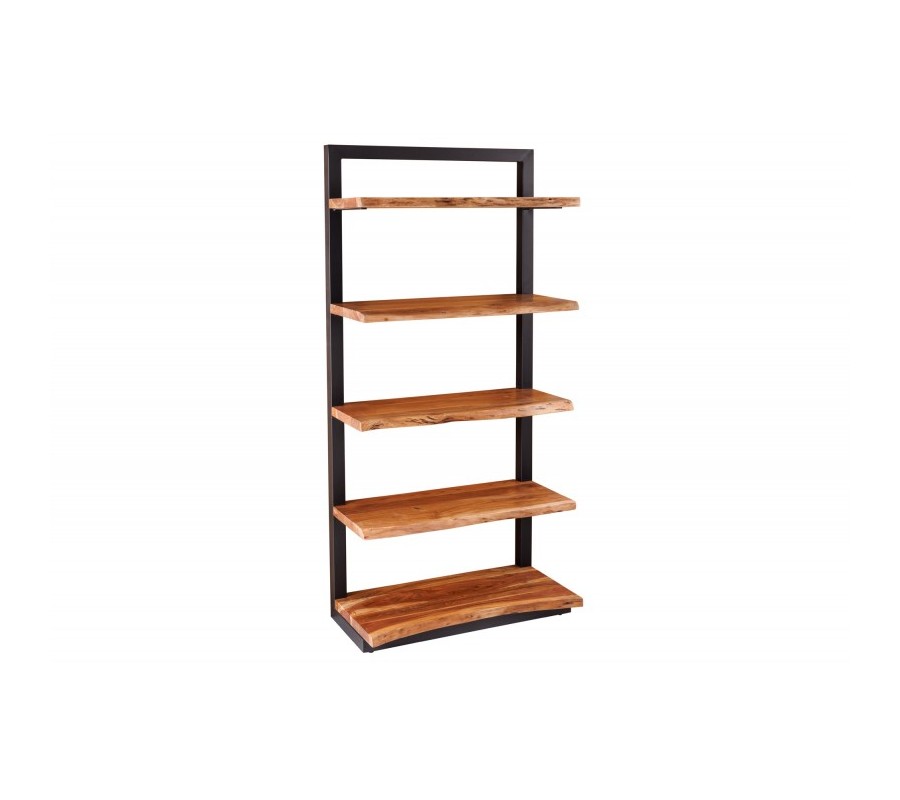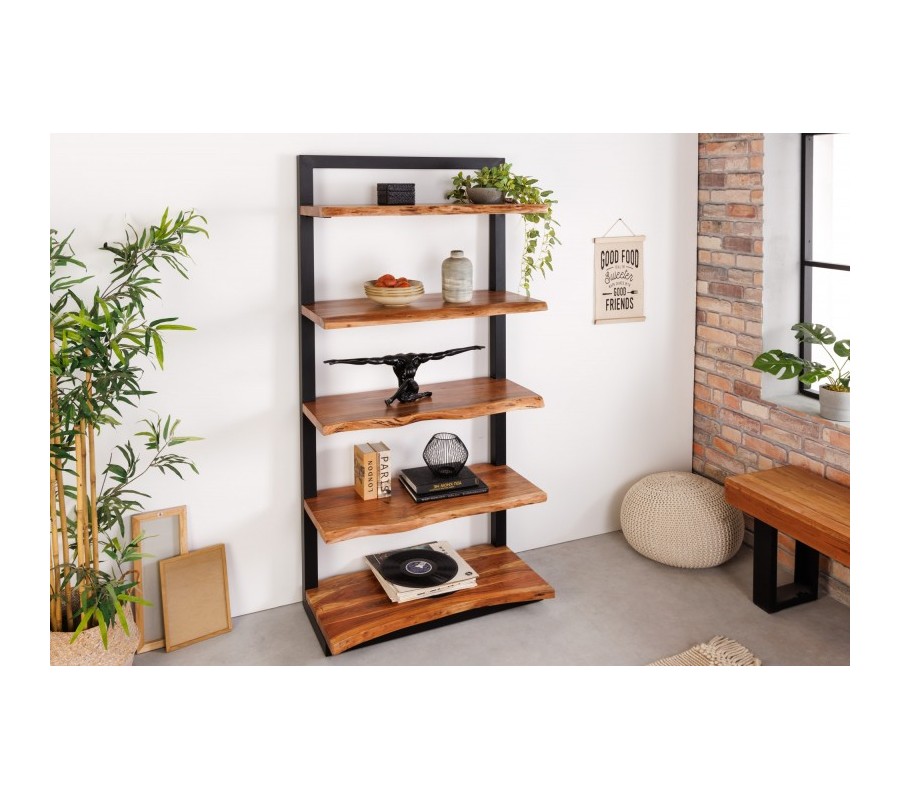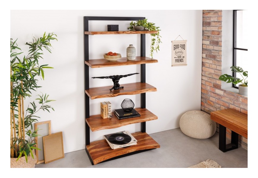 Industriálny regál z kolekcie masívneho nábytku Mammut je svojím vyhotovením nádherným kúskom, ktorý nielen prinesie nádych prírody do Vašej obývačky, ale taktiež aj otvorený priestor, vhodný na vystavenie Vašich obľúbených dekorácií. Moderný regál Mammut disponuje čiernou kovovou konštrukciou, ktorá je obohatená o práškový nástrek pre umocnenie štýlového industriálneho vzhľadu. Regál taktiež disponuje piatimi policami z akáciového masívu v naturálnom hnedom vyhotovení, ktoré sú zasunuté do kovovej konštrukcie. Masívne police v neposlednom rade disponujú povrchovým lakovaním, ktoré zvýrazní prírodný vzhľad a lesklý povrch. Regál Mammut odporúčame kombinovať v moderných a industriálnych obývačkách v kombinácii s dreveným a kovovým nábytkom.