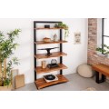 Industriálny regál Mammut s kovovou konštrukciou v čiernej farbe a hnedými masívnymi policami 178cm