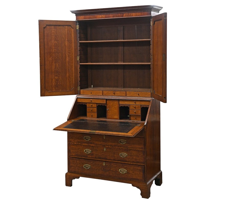 Klasická knižnica Strussi v tmavohnedom prevedení z dreveného masívu na nožičkách so sekretárom 215cm