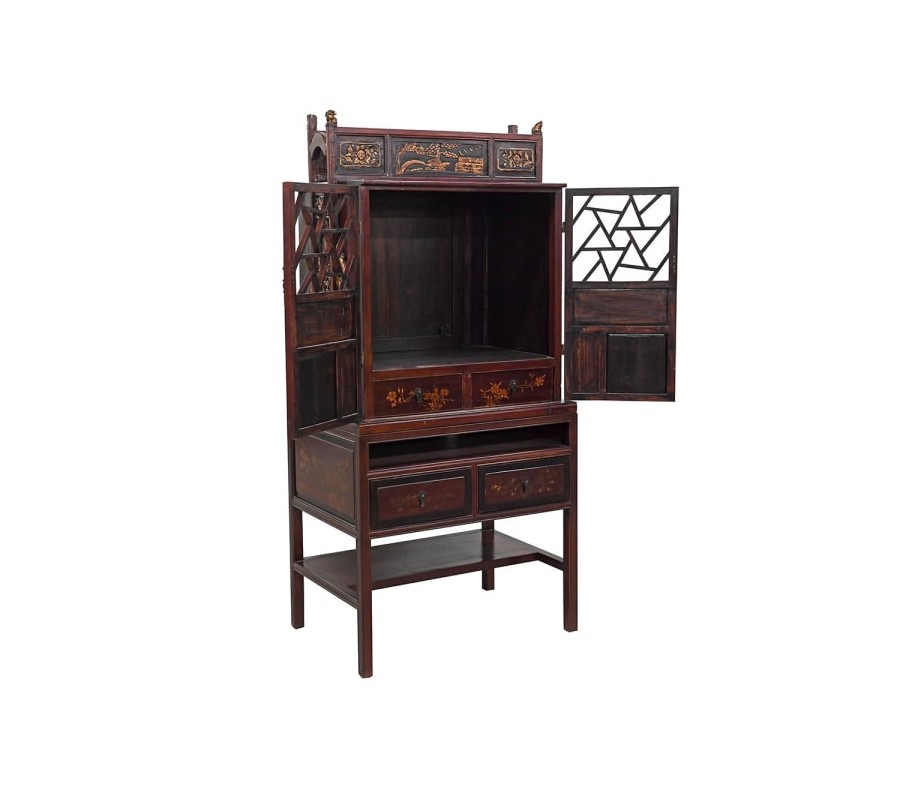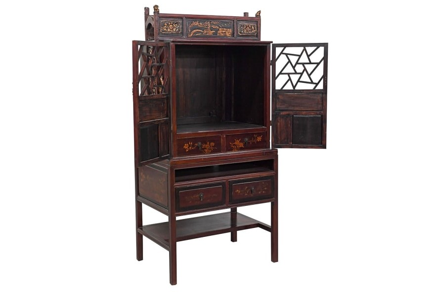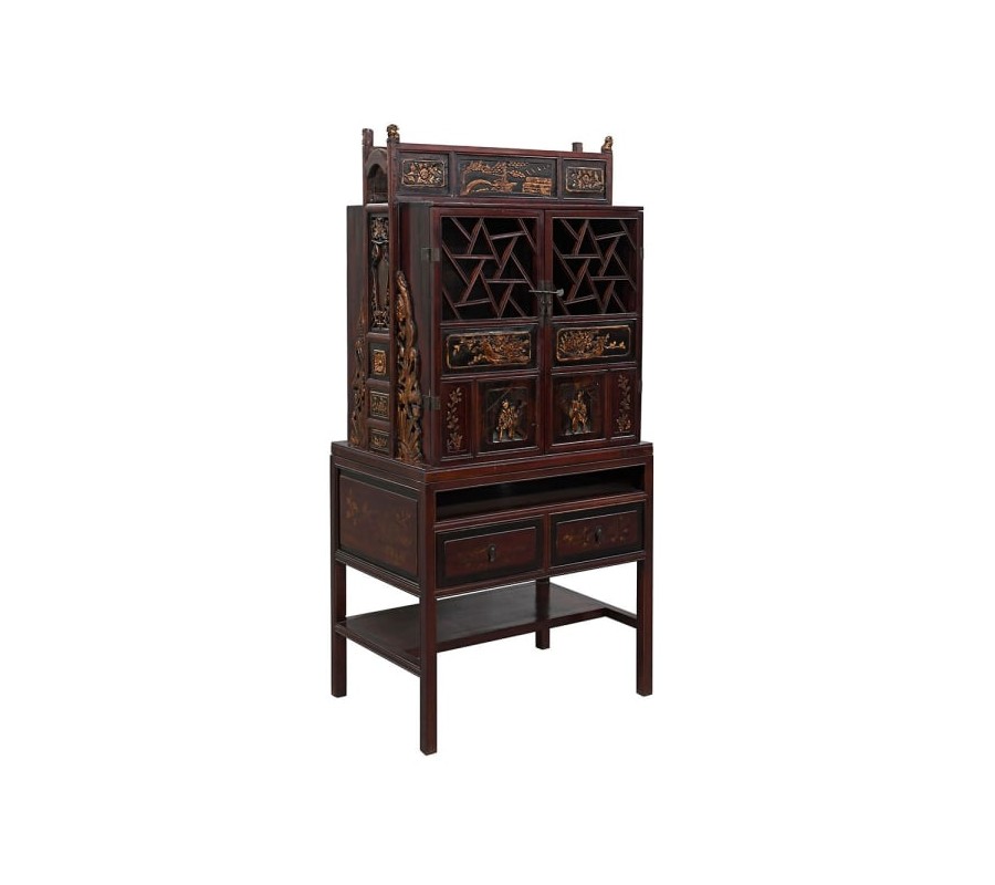 Exkluzívny kredenc Amaranta si svoje miesto nájde predovšetkým v orientálne ladených obývačkách, jedálňach či kancelárskych priestoroch. Vyznačuje sa svojím detailným a precíznym zdobením, ktoré je inšpirované čínskou kultúrou. Je tak dokonalým kúskom do orientálne ladených priestorov, ktoré potrebujú viac úložného priestoru. Kredenc disponuje poličkami s dvierkami i zásuvkami a poskytuje tak dostatok úložného priestoru, či už sa ho roznodnete využiť v obývačke, kancelárii alebo v barových priestoroch. Jeho tmavohnedé masívne prevedenie mu dodáva luxusný vzhľad a vo vašej miestnosti bude pôsobiť dominantne. Je preto vhodné tento kúsok doplniť jemnejšími textíliami v prírodných farbách, ale krok vedľa nespravíte ani doplnením kontrastnou červenou, oranžovou či žltou sedačkou alebo kreslom. Nádherné vyrezávanie a ozdobné vzory dodávajú kredencu Amaranta jedinečný orientálny nádych, ktorý môže zdobiť aj váš interiér!