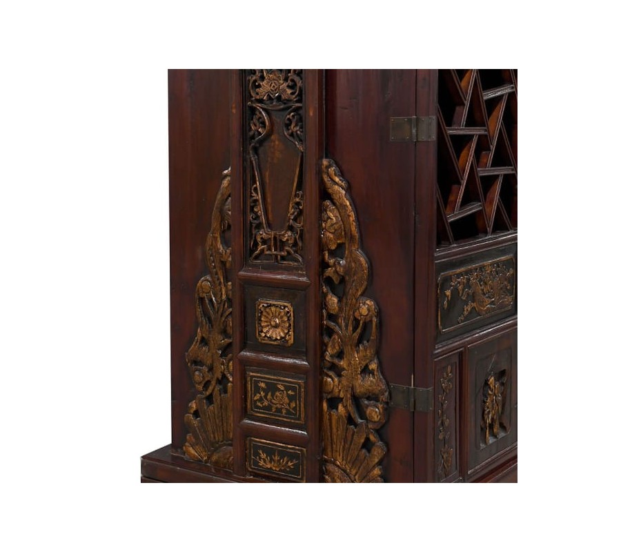 Luxusný orientálny kredenc Amaranta z tmavého masívneho dreva s vyrezávaným zdobením 188cm