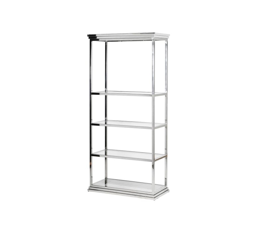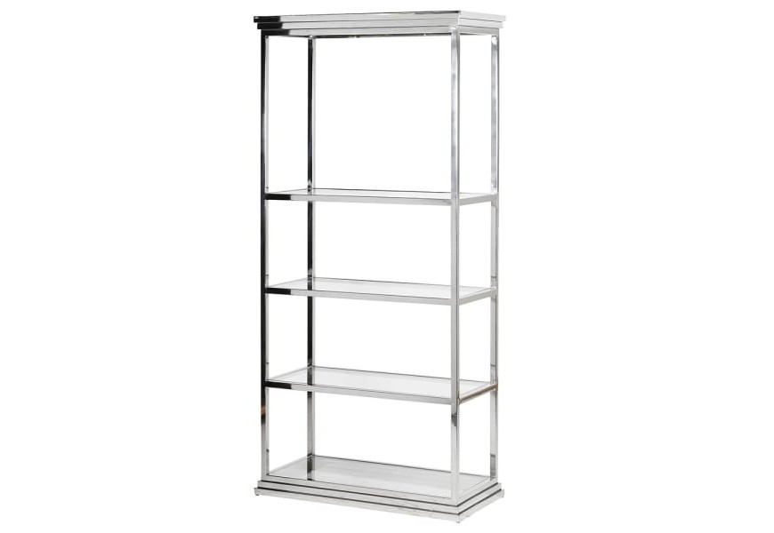 Dizajnový regál Anesi s chrómovou kovovou konštrukciou a poličkami zo skla 192cm