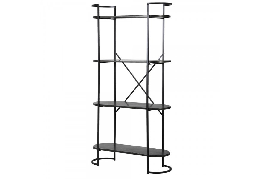 Štýlový vysoký industriálny regál Ivon čiernej farby z kovu 190 cm