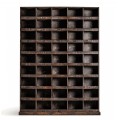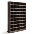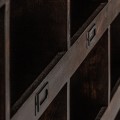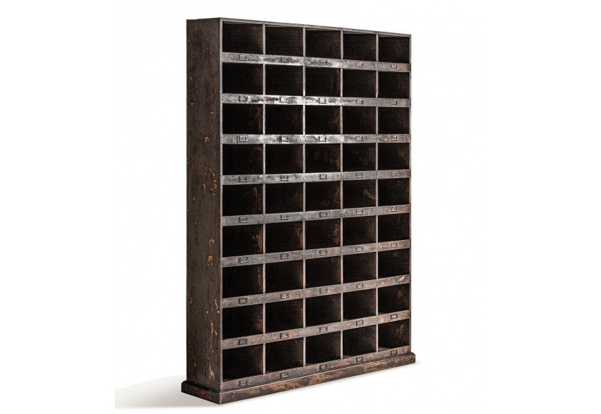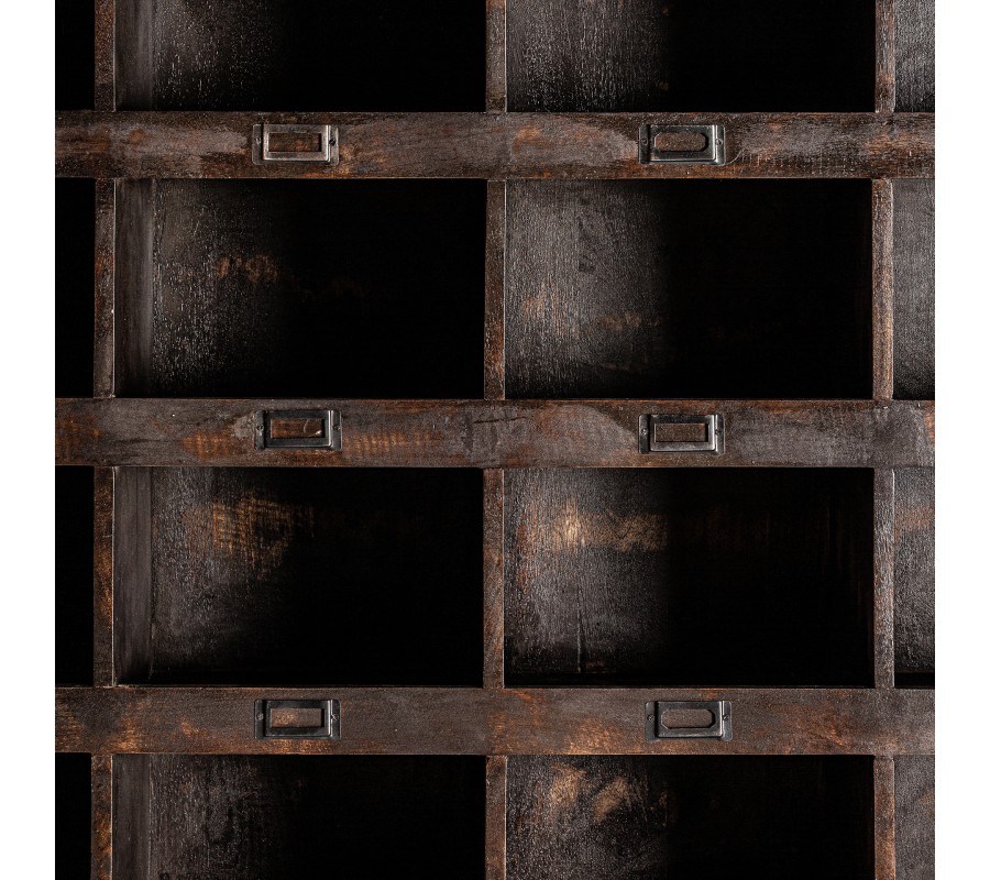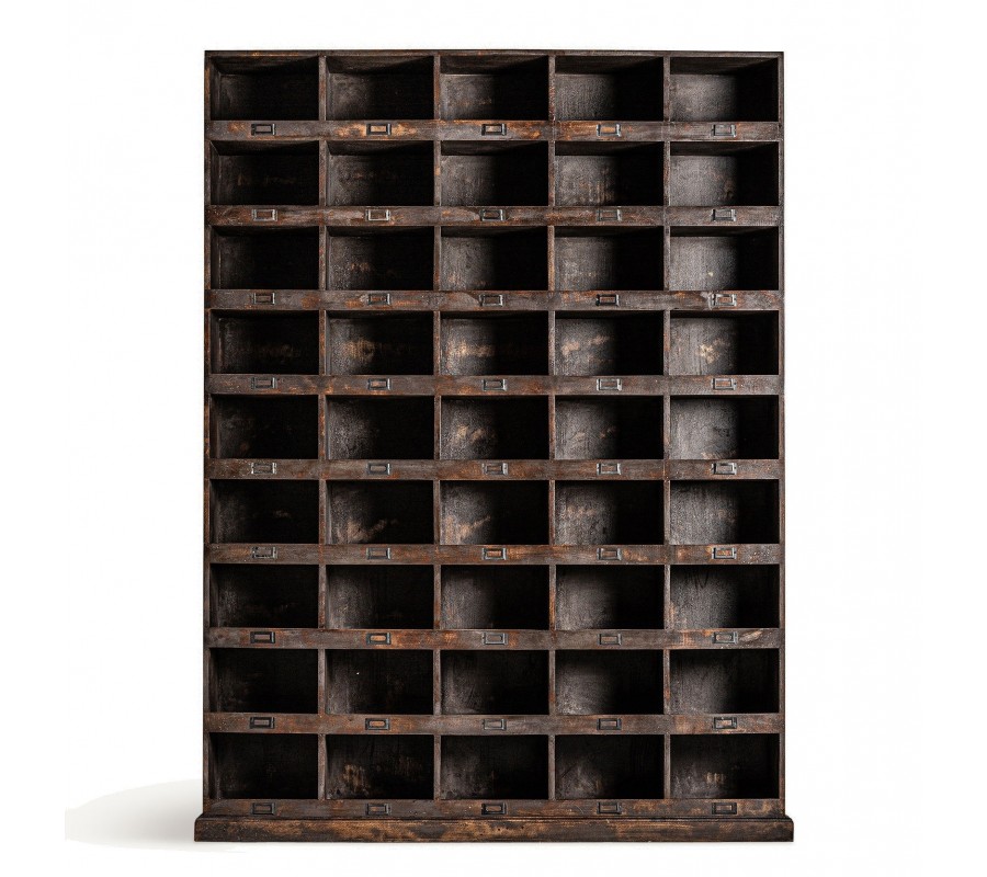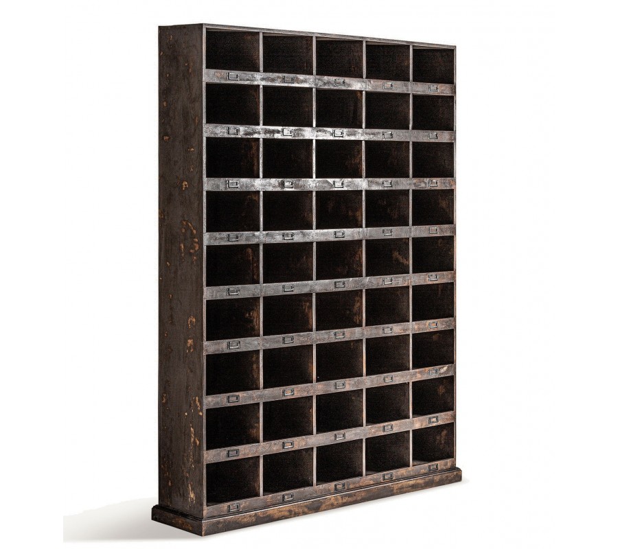Úložný priestor je predelený na 45 menších políc, umiestnených v piatich stĺpcoch a deviatich radoch. Pod každou policou sa nachádza tmavá kovová úchytka, do ktorej je možné umiestniť menovku s označením obsahu police. Vďaka tomu pôsobí knižnica organizovaným dojmom a pripomína svojím vzhľadom historické lekárnické kabinety.