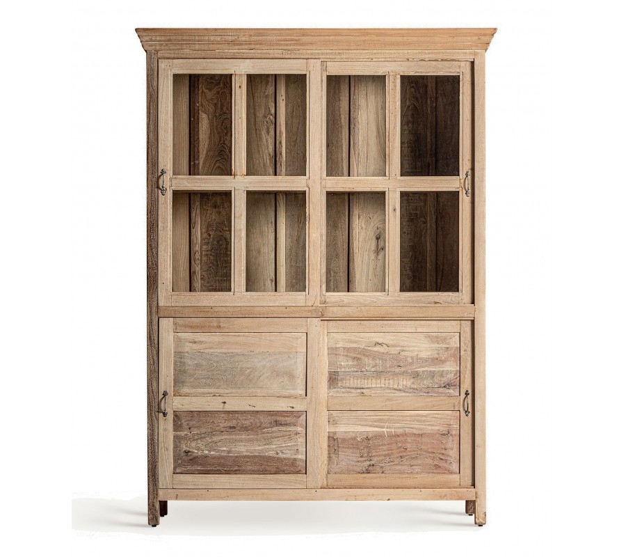 Luxusná vidiecka vitrína Cecil s posuvnými dvierkami v prírodnej svetlej hnedej farbe 197 cm