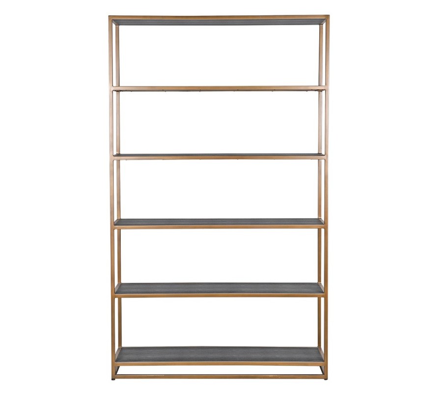 Luxusný art deco kovový obdĺžnikový zlatý regál Millie s piatimi policami 201 cm
