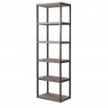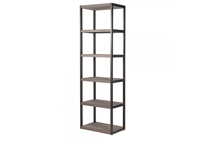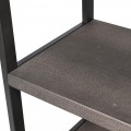 Regál pôsobí vďaka sofistikovaným tmavým odtieňom elegantným dojmom. Rám je vyrobený z kovu s matným čiernym náterom. S jeho hladkým povrch skvele ladí s výraznou štruktúrou povrchu políc. Priečky sú vyrobené z kvalitnej dubovej dyhy s poťahom z ekokože. Tento materiál pridáva k industriálnemu rámu luxusný element a vytvára zaujímavú vizuálnu variáciu v rámci čierneho farebného preverenia.