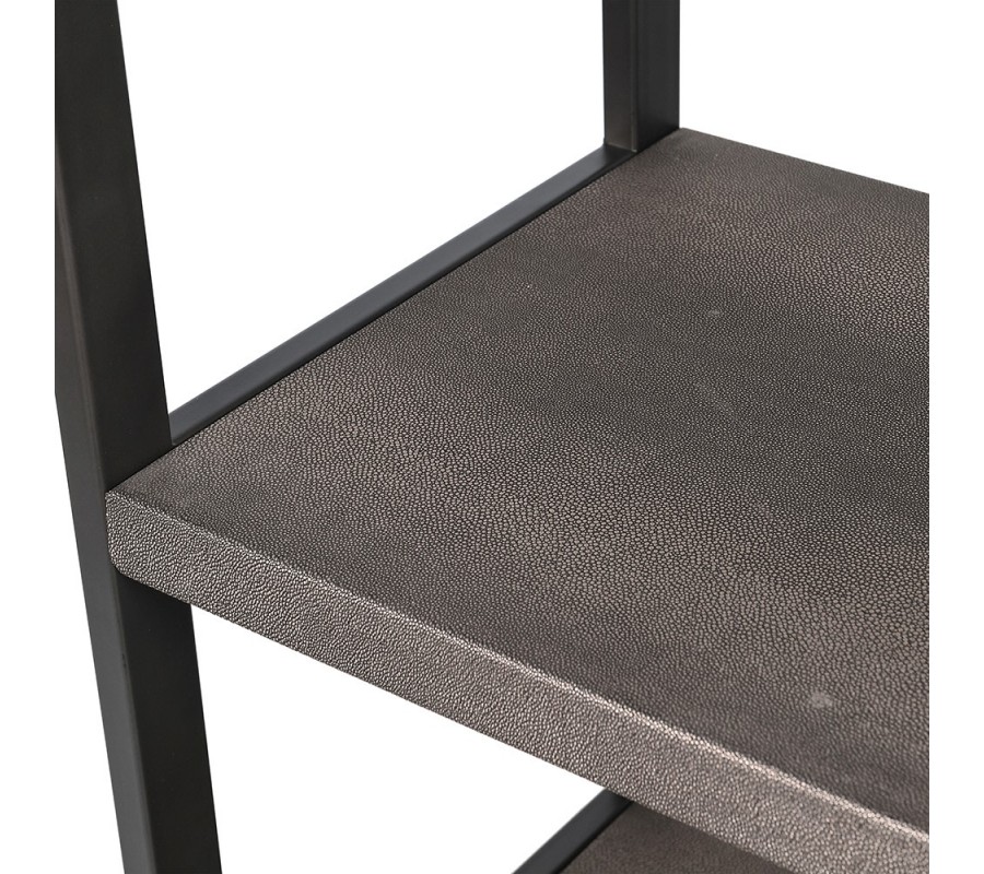 Regál Auden vás očarí minimalistickou siluetou a sofistikovanou kompozíciou štruktúr. Koža prinesie do priestoru pocit luxusu, zatiaľ čo kovový rám dodáva nábytku štýlový industriálny nádych. Paleta tmavých farieb pôsobí elegantným dojmom.