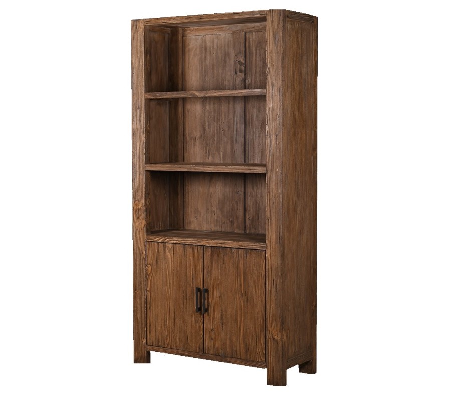 Luxusná masívna hnedá knižnica Heritage s tromi policami a dvojdverovou skrinkou so starožitnou povrchovou úpravou 200 cm