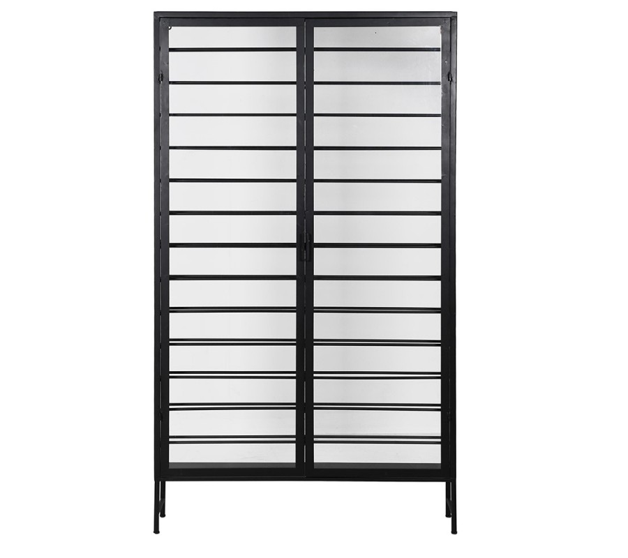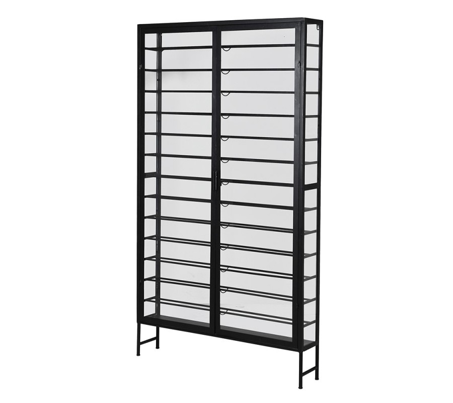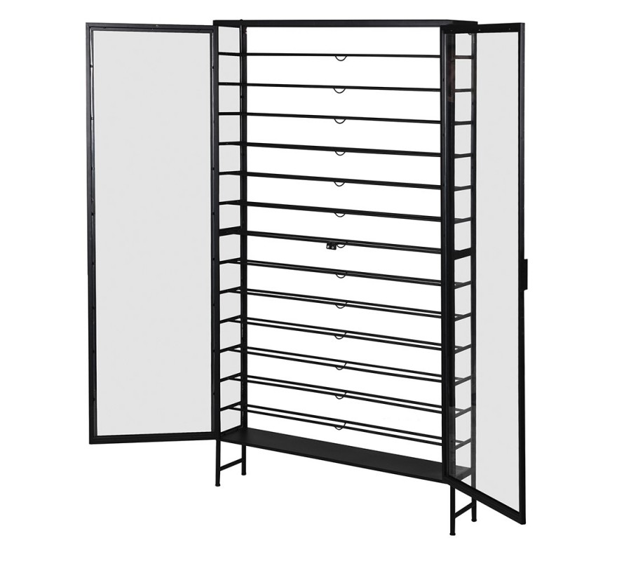 Luxusný industriálny regál na víno Winston s konštrukciou v čiernej farbe a presklennými dvojitými dverami 187 cm