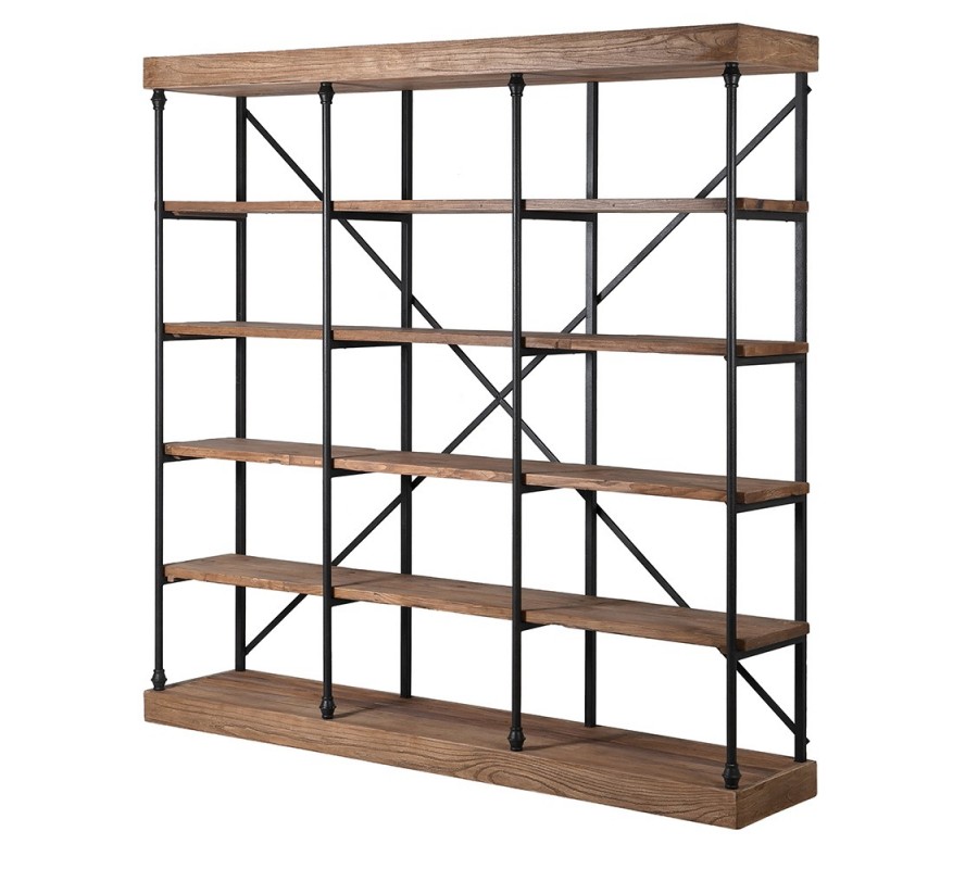 Luxusný industriálny obdĺžnikový regál Masill v rustikálnom štýle z masívneho dreva s čiernou kovovou konštrukciou 213 cm