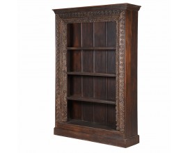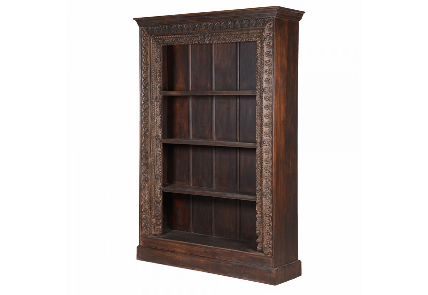 Luxusná rustikálna knižnica Manor z masívneho dreva tmavohnedej farby s ornamentálnym rámom 223 cm