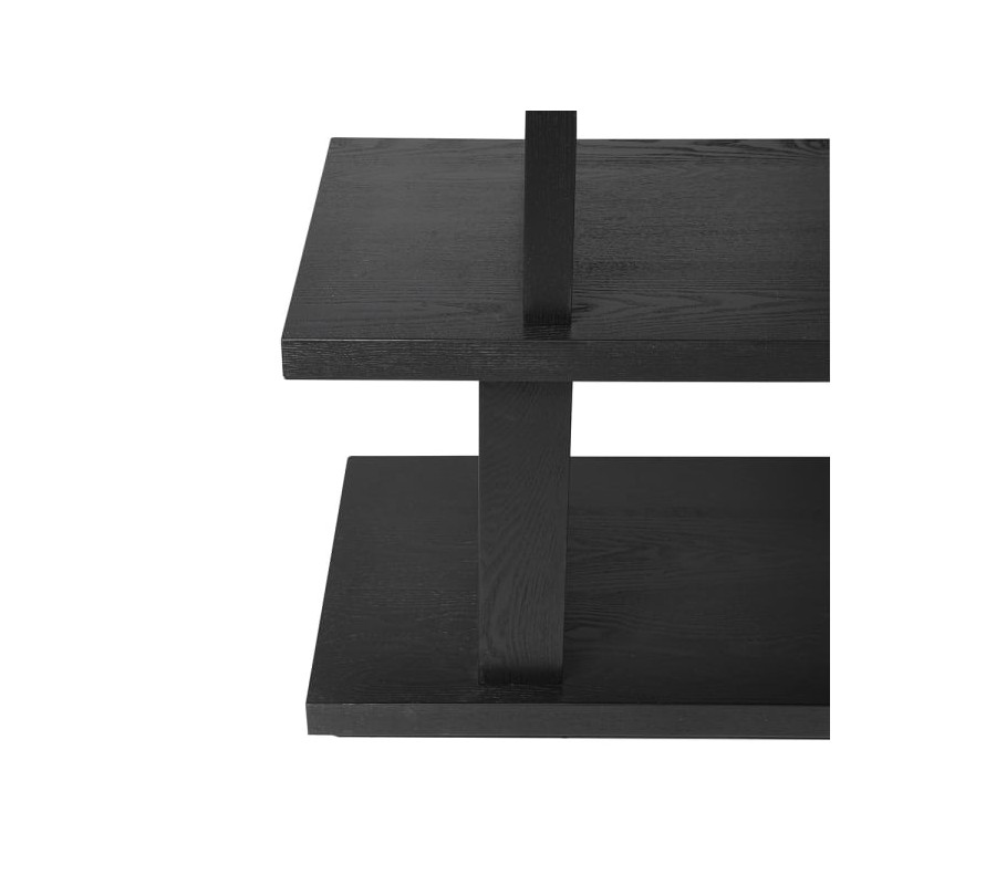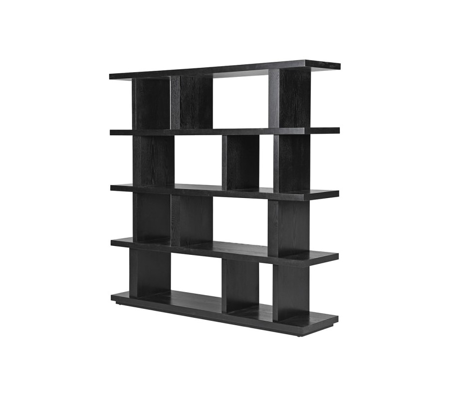 Moderný regál Ashy zaujme svojím geometrickým dizajnom a výraznou čiernou farbou, ktorý dodáva interiéru sofistikovaný a elegantný vzhľad. Je vyrobený z dyhového dreva, čo zaručuje vysokú pevnosť, stabilitu a dlhú životnosť. Regál má tvar obdĺžnika s členitým usporiadaním poličiek, ktoré vytvárajú zaujímavú kombináciu praktickosti a estetického dojmu.