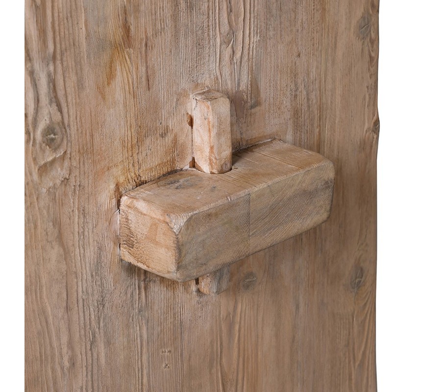 Knižnica je vyrobená z masívneho recyklovaného dreva, ktoré jej prepožičiava dotyk vintage autentickosti. Rovné povrchy zdobia naturálne praskliny, uzly a štruktúry letokruhov, ktoré dodávajú každému kusu originálny vzhľad a estetickú hodnotu. Svetlá hnedá farba pôsobí príjemným teplým dojmom a zdôrazňuje naturálny charakter nábytku. Recyklované drevo je zároveň ekologické a šetrné k životnému prostrediu.
