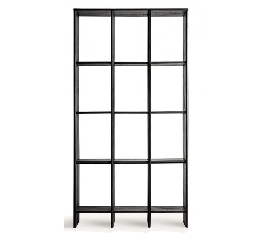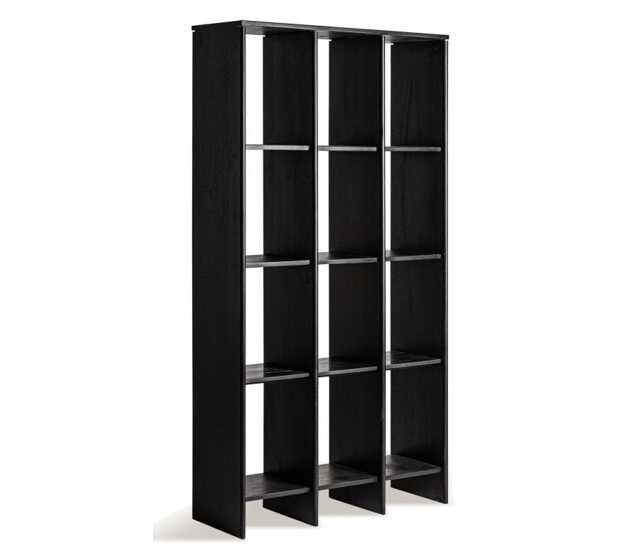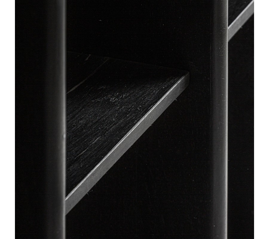 Luxusná čierna knižnica Naria z mangového dreva obdĺžnikového tvaru s dvanástimi policami 210 cm
