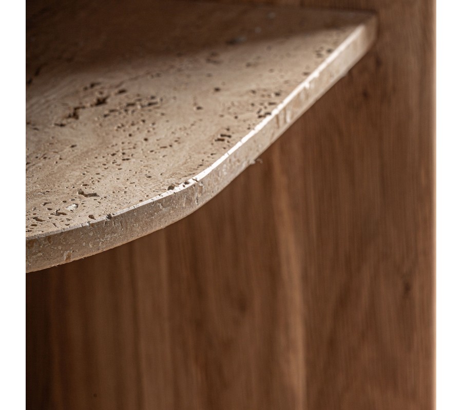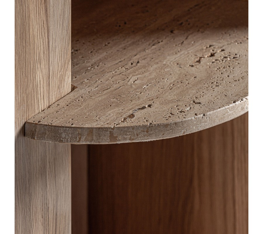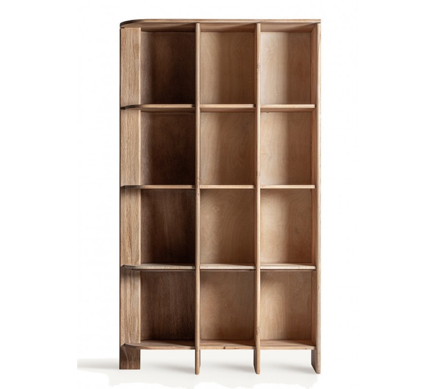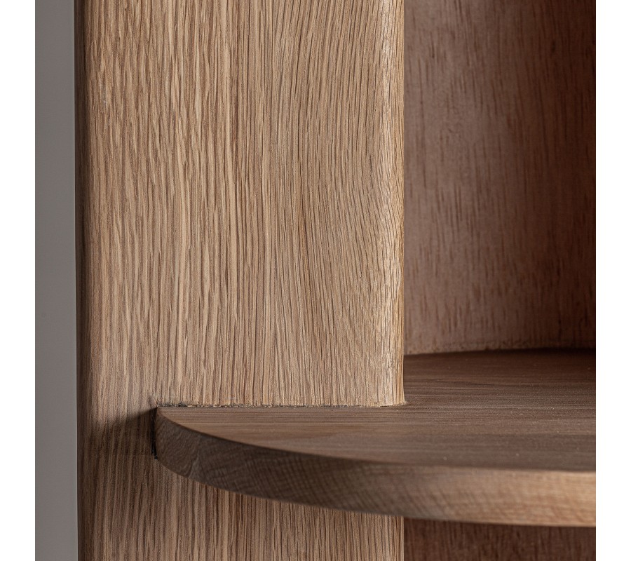 Luxusný moderný regál Naria v obdĺžnikovom tvare je vyrobený z masívneho dubového dreva v prírodnej hnedej farbe s výraznou štruktúrou letokruhov. Dizajn je jedinečný vďaka zaoblenej bočnej strane a zaobleným hranám, ktoré dodávajú celkovému vzhľadu jemnosť a eleganciu. Regál disponuje dvanástimi policami, ktoré sú rovnomerne rozmiestnené a poskytujú dostatok úložného priestoru na knihy, dekorácie či iné predmety.