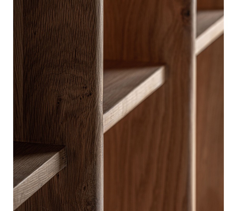Luxusný škandinávsky obdĺžnikový regál Naria z masívneho dubového dreva v hnedej farbe s dvanástimi poličkami 210 cm