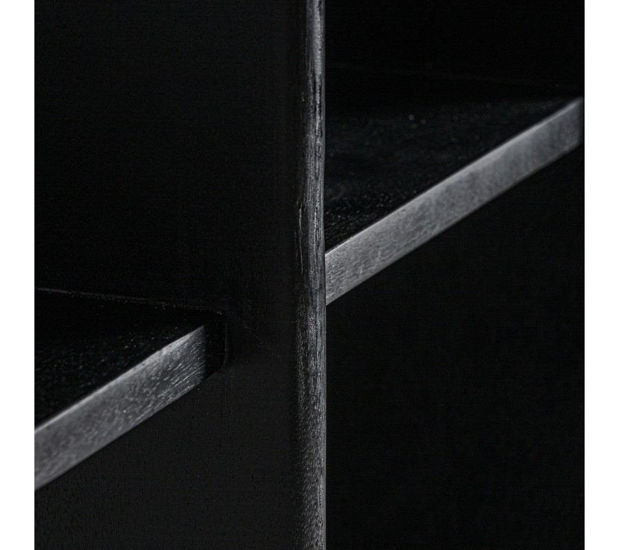 Luxusný obdĺžnikový masívny čierny regál Naria z mangového dreva s dvanástimi poličkami 210 cm