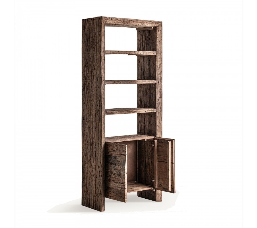 Tento knižnicový regál sa hodí do rustikálne, vidiecky, industriálne alebo loftovo ladených interiérov, kde vynikne v kombinácii s masívnymi drevenými alebo kovovými prvkami. Skvelo doplní interiér s prírodnými textíliami, koženými kreslami, doplnkami v odtieňoch hnedej, čiernej alebo tmavozelenej farby. Vhodný je do pracovne, obývačky alebo jedálne, kde poslúži nielen ako funkčný úložný priestor, ale aj ako výrazný dizajnový prvok.